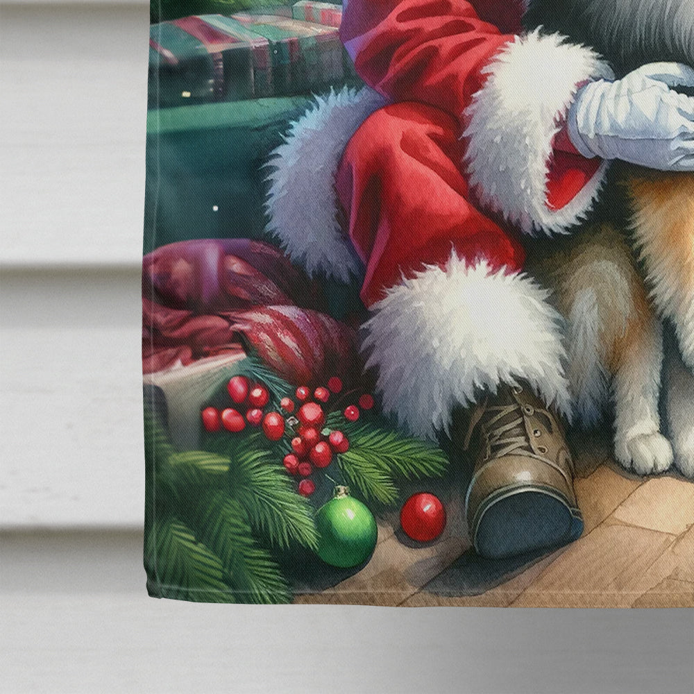 House Flag featuring breed specific Keeshond artwork. Celebrate Christmas with this Christmas Large Flag. Presenting our Heavy Duty Polyester House Size Decorative Sleeve Pole Flag, a vibrant addition to enhance the aesthetic appeal of your home. This large decorative flag, measuring approximately 28 x 40 inches, offers ample coverage and visibility. Each flag is meticulously sewn and made individually, ensuring a unique piece that may slightly vary in size. It's a sleeve pole flag, designed to fit a standard decorative flag pole effortlessly. Please note that the flag pole and bracket are not included and should be purchased separately. What sets our flag apart is its dual-sided print. The design is mirrored on both sides of the fabric, allowing for uniform visibility regardless of the angle. Printed in full color, our flag showcases vibrant hues that truly stand out. To ensure lasting vibrancy and durability, the dyes are heat-set into the fabric. This ensures your flag remains bright and captivating through various weather conditions. Elevate the look of your home with our Heavy Duty Polyester House Size Decorative Sleeve Pole Flag!