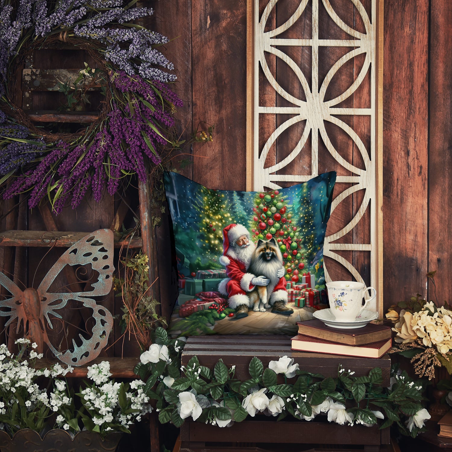 Throw Pillow featuring breed specific Keeshond artwork. Celebrate Christmas with this Christmas Pillow. Add a touch of vibrancy and comfort to your outdoor seating with Caroline's Treasures Fabric Decorative Pillow. Measuring approximately 14 inches by 14 inches, this outdoor pillow is crafted to elevate the appeal of your patio furniture, infusing it with vivid color and artistic flair. The pillow includes a 100% Polyester Fabric sham filled with a quality pillow form to provide superior comfort. Innovatively made from our brand new material, specifically woven for its water resistance, this pillow is designed for durability. The soft canvas fabric offers versatility in use, fit for your indoor couch or your outdoor patio, porch, or veranda. The fabric is dyed with colorfast dyes built for resilience against weather conditions, ensuring the pillow retains its beauty over time. Constructed by sewing three fabric pieces to create a sham, the polyester insert is then nestled inside to form the pillow, resulting in an overstuffed pillow that maintains its shape. Both the sham and the pillow insert are proudly made in the United States. As the pillows are handcrafted, there may be minor variations in size, further enhancing their unique charm. Experience comfort in style with Caroline's Treasures Fabric Decorative Pillow.