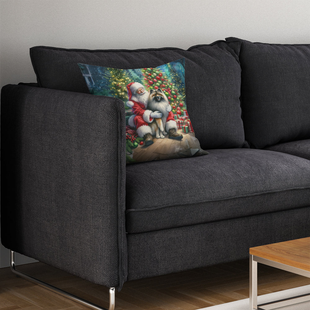 Keeshond and Santa Claus Throw Pillow