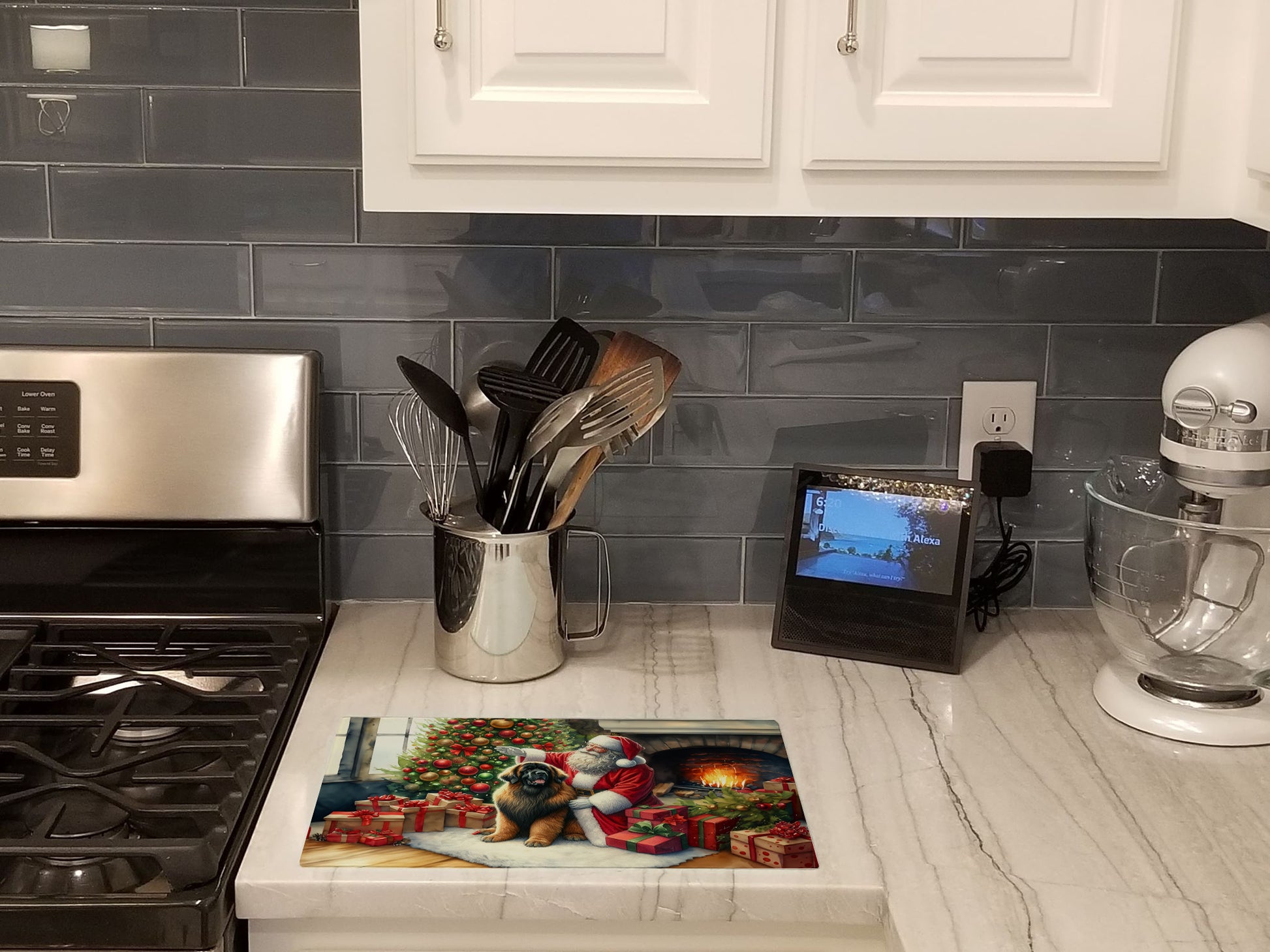 Glass Cutting Board featuring breed specific Leonberger artwork. Celebrate Christmas with this Christmas Cutting Board. Introduce your kitchen to the vibrant, large Decorative Glass Cutting Board from Caroline's Treasures. Crafted from resilient tempered glass, this board is not only a utilitarian necessity but also a colorful art piece. With its generous dimensions of 15 inches in height and 12 inches in length, it offers ample space for all your cutting needs. Every piece showcases captivating artwork from distinguished artists, bringing an aesthetic edge to your kitchen. Beyond its attractive design, this cutting board ensures your countertop stays pristine and unscathed, owing to its heat-resistant properties. Engineered with user convenience in mind, it features non-skid feet for stability, and rounded corners for additional safety. Its robust construction renders it virtually unbreakable, guaranteeing longevity. The board comes with protective feet bumpers, maintaining its position during use. This product is recommended to be hand washed only. Proudly printed and assembled in the United States, this cutting board exemplifies superior craftsmanship. With Caroline's Treasures' Decorative Glass Cutting Board, you're investing in a blend of functionality and artistic flair.