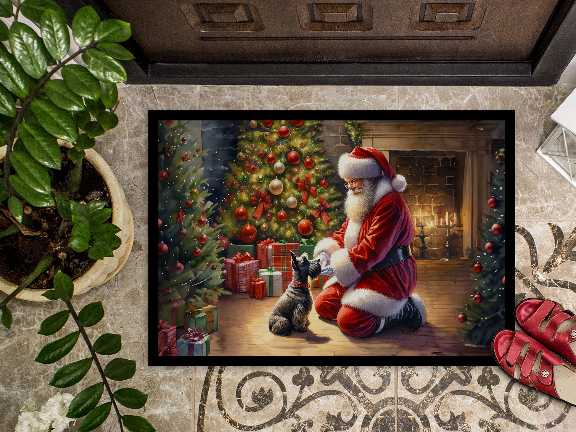 Scottish Terrier and Santa Claus Doormat