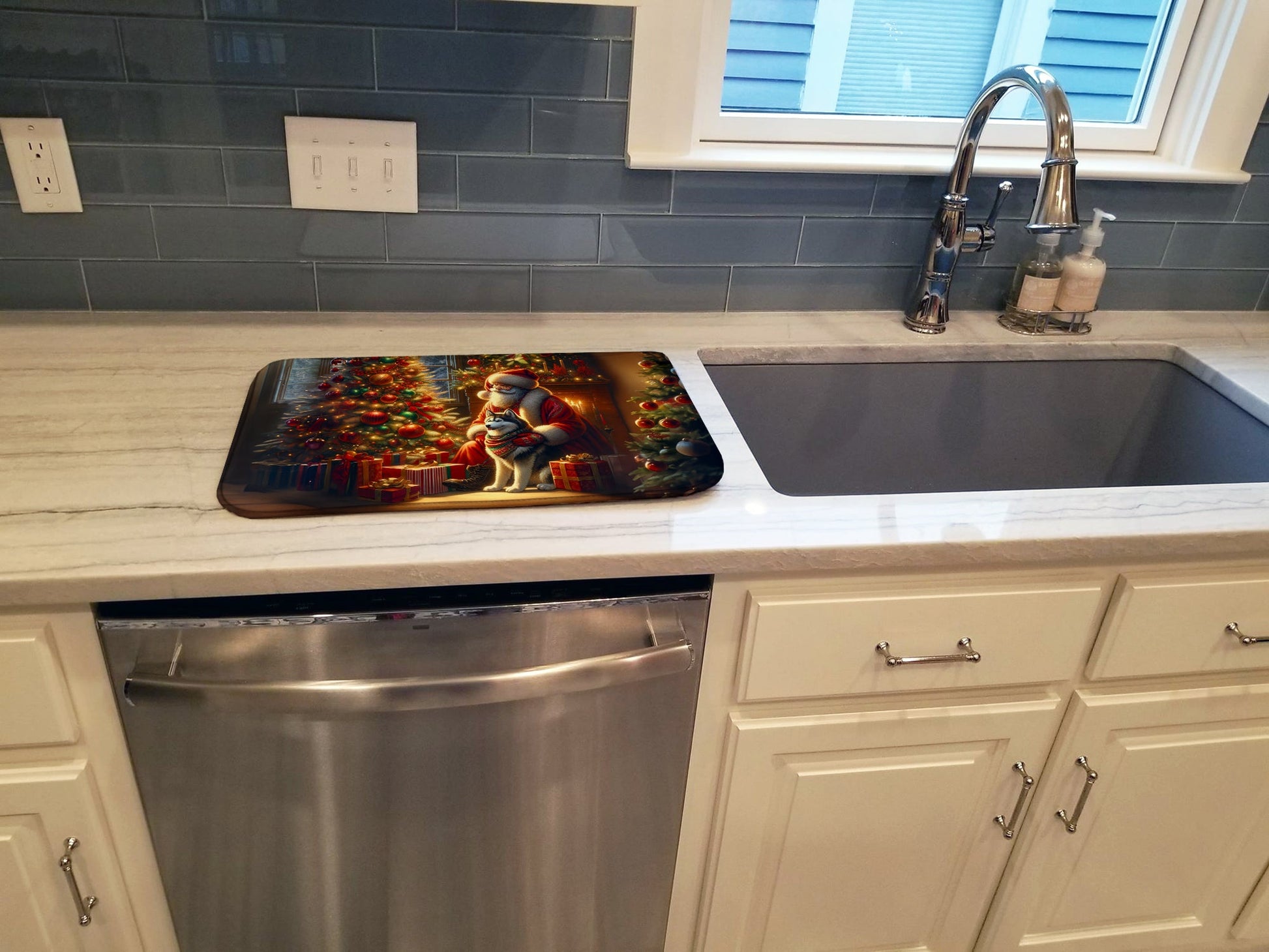 Siberian Husky and Santa Claus Dish Drying Mat