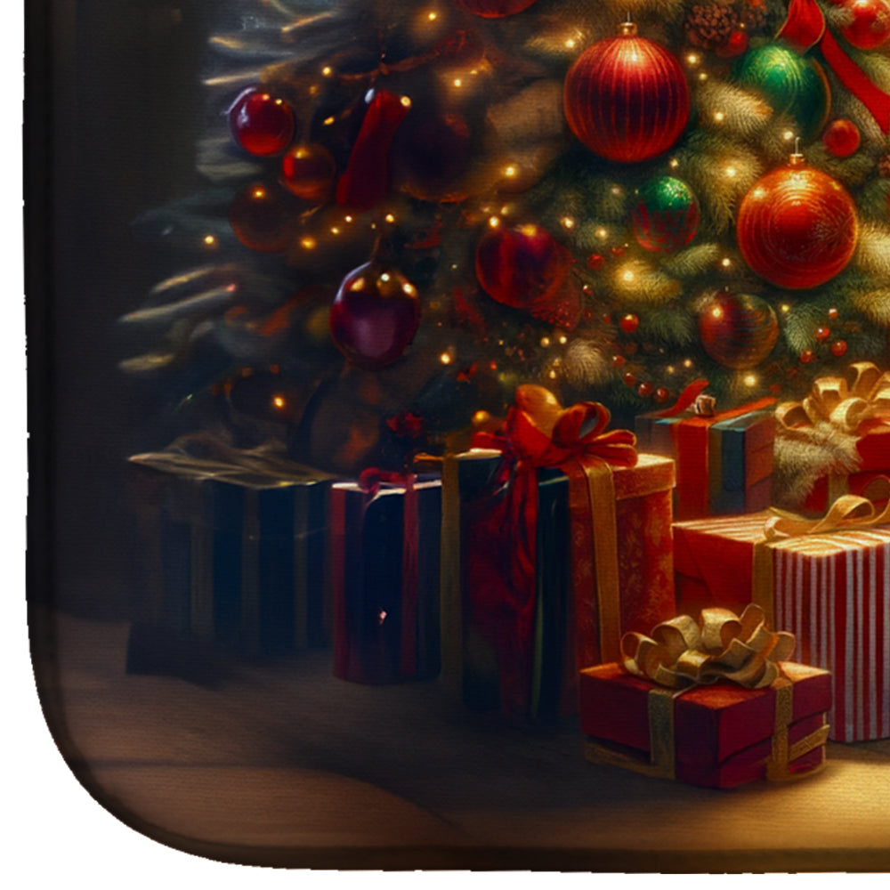 Dish Drying Mat featuring breed specific Siberian Husky artwork. Celebrate Christmas with this Christmas Dish Drying Mat. Say goodbye to messy countertops and soggy dish towels with our innovative dish drying mat. Our high-quality dish drying pad is designed to keep your countertops dry while offering a stylish and efficient solution. Whether you're air drying dishes, glasses, stemware, silverware, pots, pans, bottles, or even fruits and vegetables, our dish mat is the perfect choice. The 14 inches x 22 inches size fits most counters and dish drying racks, and the non-slip design ensures stability. Made with water-absorbent polyester and a polyurethane foam insert, our dish drying mat is not only functional but also durable. It's machine washable and printed in the USA for long-lasting use. The beautiful artwork adds flair to your kitchen decor, making it a perfect housewarming gift or present for any occasion. Upgrade your kitchen experience with our absorbent and versatile dish drying mat.