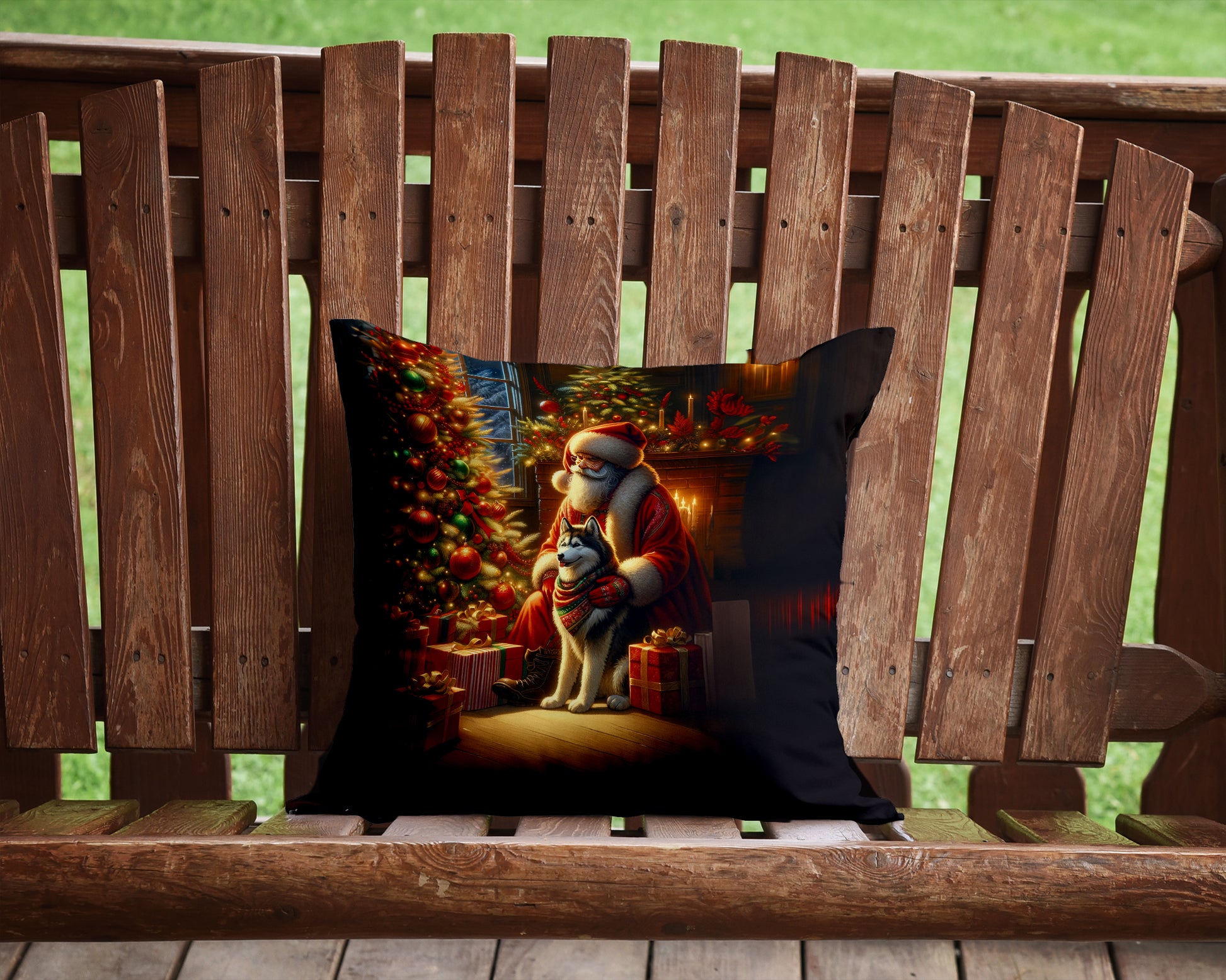 Throw Pillow featuring breed specific Siberian Husky artwork. Celebrate Christmas with this Christmas Pillow. Add a touch of vibrancy and comfort to your outdoor seating with Caroline's Treasures Fabric Decorative Pillow. Measuring approximately 14 inches by 14 inches, this outdoor pillow is crafted to elevate the appeal of your patio furniture, infusing it with vivid color and artistic flair. The pillow includes a 100% Polyester Fabric sham filled with a quality pillow form to provide superior comfort. Innovatively made from our brand new material, specifically woven for its water resistance, this pillow is designed for durability. The soft canvas fabric offers versatility in use, fit for your indoor couch or your outdoor patio, porch, or veranda. The fabric is dyed with colorfast dyes built for resilience against weather conditions, ensuring the pillow retains its beauty over time. Constructed by sewing three fabric pieces to create a sham, the polyester insert is then nestled inside to form the pillow, resulting in an overstuffed pillow that maintains its shape. Both the sham and the pillow insert are proudly made in the United States. As the pillows are handcrafted, there may be minor variations in size, further enhancing their unique charm. Experience comfort in style with Caroline's Treasures Fabric Decorative Pillow.