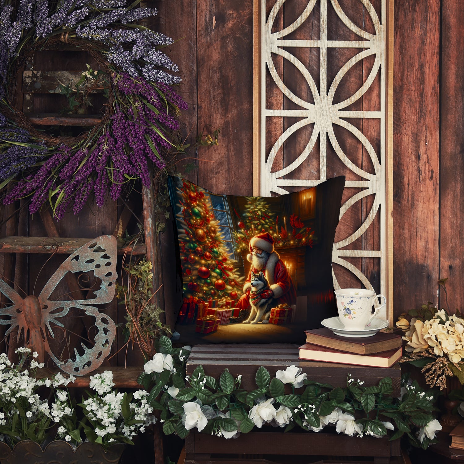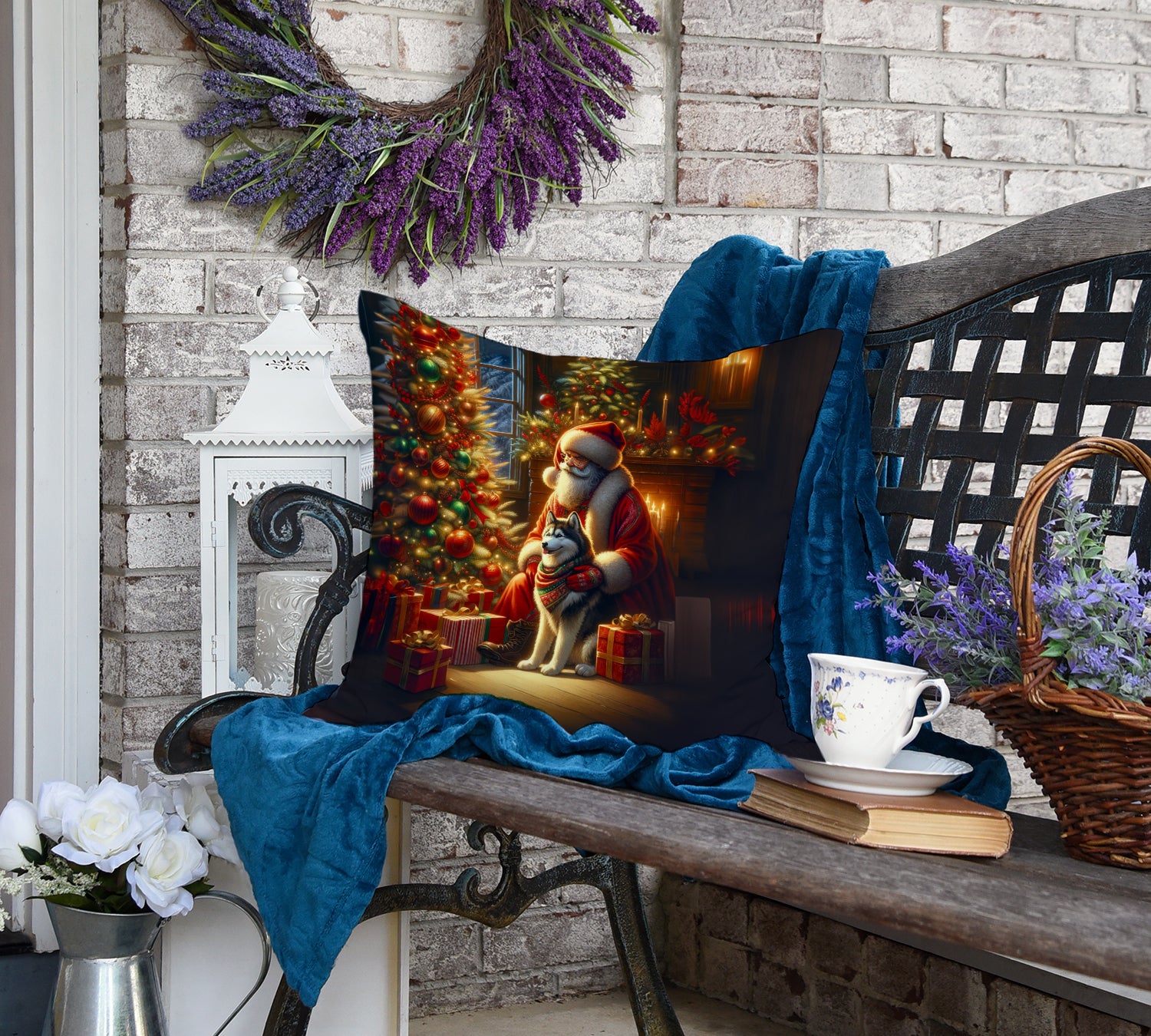 Throw Pillow featuring breed specific Siberian Husky artwork. Celebrate Christmas with this Christmas Pillow. Revitalize your outdoor or indoor living space with Caroline's Treasures 18x18 Fabric Decorative Pillow. With a generously sized dimension of approximately 18 inches by 18 inches, this pillow makes a comfortable and aesthetic addition to any seating area. Made from a unique, water-resistant material developed by Caroline's Treasures, the pillow sham is 100% polyester fabric that's durable and ready to weather any condition. Its vibrant, full-color artwork will not fade over time as it is dyed with color-fast dyes. Whether you place it on your patio furniture, porch, veranda, or indoor couch, its soft canvas fabric ensures a cozy experience. The pillow is handcrafted in the United States, featuring a sham created from three pieces of fabric and a polyester insert for enduring shape and overstuffed comfort. Despite being robustly built to endure the outdoors, it is as soft and snug as your favorite indoor cushions. Please note, as all our pillows are handmade, sizes may vary slightly, adding to the charm of this unique decorative item.