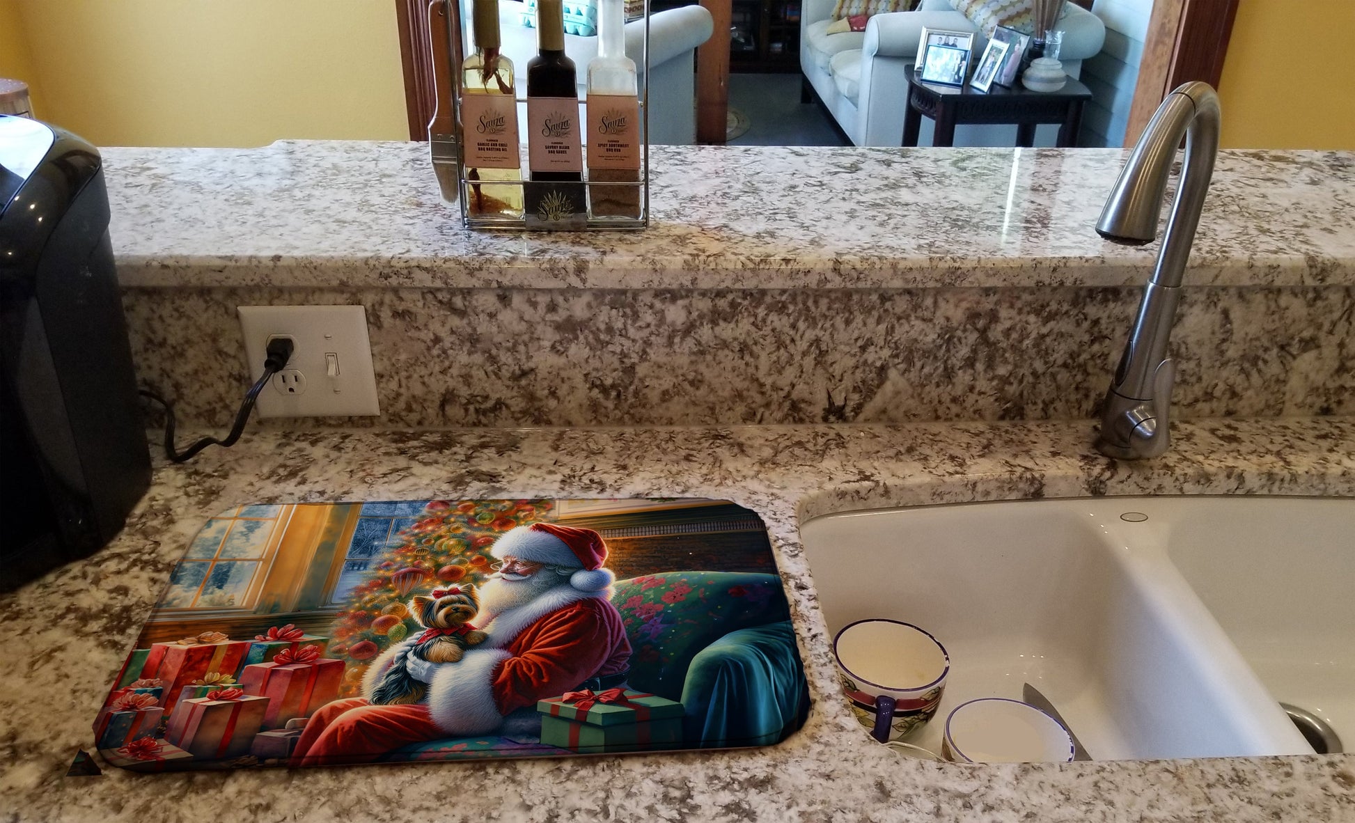 Yorkshire Terrier Yorkie and Santa Claus Dish Drying Mat
