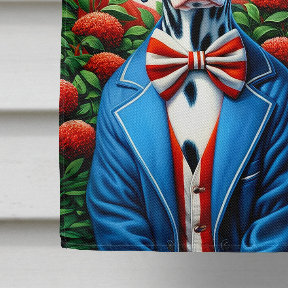 House Flag featuring breed specific Dalmatian artwork. Presenting our Heavy Duty Polyester House Size Decorative Sleeve Pole Flag, a vibrant addition to enhance the aesthetic appeal of your home. This large decorative flag, measuring approximately 28 x 40 inches, offers ample coverage and visibility. Each flag is meticulously sewn and made individually, ensuring a unique piece that may slightly vary in size. It's a sleeve pole flag, designed to fit a standard decorative flag pole effortlessly. Please note that the flag pole and bracket are not included and should be purchased separately. What sets our flag apart is its dual-sided print. The design is mirrored on both sides of the fabric, allowing for uniform visibility regardless of the angle. Printed in full color, our flag showcases vibrant hues that truly stand out. To ensure lasting vibrancy and durability, the dyes are heat-set into the fabric. This ensures your flag remains bright and captivating through various weather conditions. Elevate the look of your home with our Heavy Duty Polyester House Size Decorative Sleeve Pole Flag!