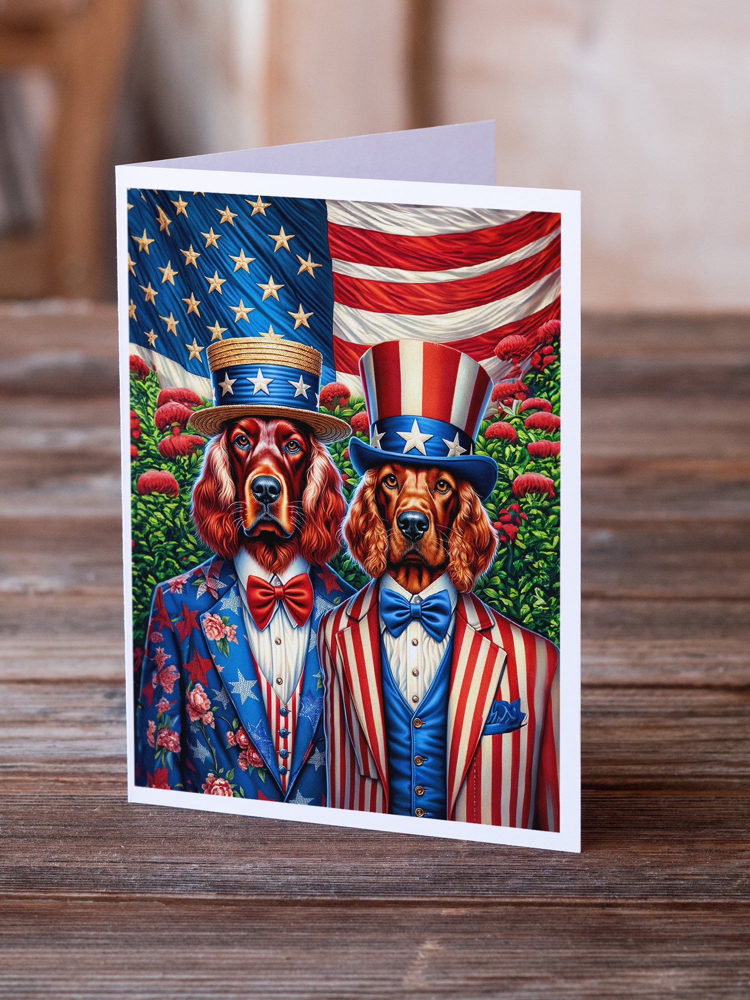 Greeting Cards Pack of 8 featuring breed specific Irish Setter artwork. Celebrate special moments with Caroline's Treasures Printed Greeting Card Pack. This pack includes eight beautifully folded 5x7 cards, accompanied by eight matching white envelopes. With blank interiors, these cards provide ample space for your personalized messages and heartfelt holiday greetings. Each card features captivating full-color artwork, meticulously printed in our facility on high-quality 80 lb cover stock or 216 GSM. The super smooth finish of the white cards enhances the visual impact of the artwork, creating a truly stunning presentation. Designed by our talented in-house artists or licensed artists, the artwork on these cards showcases their creativity and attention to detail. From vibrant illustrations to captivating designs, each card tells its own unique story. Whether it's for birthdays, anniversaries, holidays, or any special occasion, Caroline's Treasures Greeting Card Pack is the perfect way to convey your heartfelt sentiments. Share joy, love, and warm wishes with these exquisite cards and make every moment unforgettable.