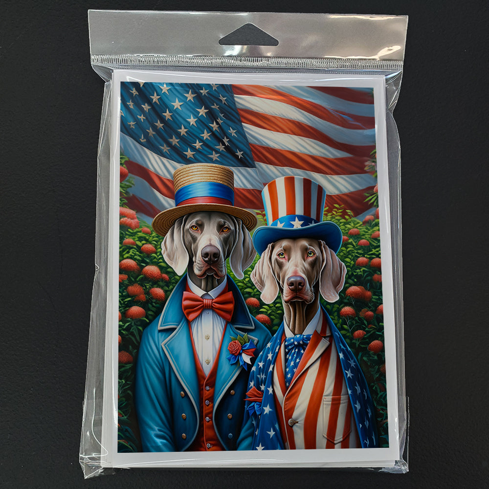 Greeting Cards Pack of 8 featuring breed specific Weimaraner artwork. Celebrate special moments with Caroline's Treasures Printed Greeting Card Pack. This pack includes eight beautifully folded 5x7 cards, accompanied by eight matching white envelopes. With blank interiors, these cards provide ample space for your personalized messages and heartfelt holiday greetings. Each card features captivating full-color artwork, meticulously printed in our facility on high-quality 80 lb cover stock or 216 GSM. The super smooth finish of the white cards enhances the visual impact of the artwork, creating a truly stunning presentation. Designed by our talented in-house artists or licensed artists, the artwork on these cards showcases their creativity and attention to detail. From vibrant illustrations to captivating designs, each card tells its own unique story. Whether it's for birthdays, anniversaries, holidays, or any special occasion, Caroline's Treasures Greeting Card Pack is the perfect way to convey your heartfelt sentiments. Share joy, love, and warm wishes with these exquisite cards and make every moment unforgettable.