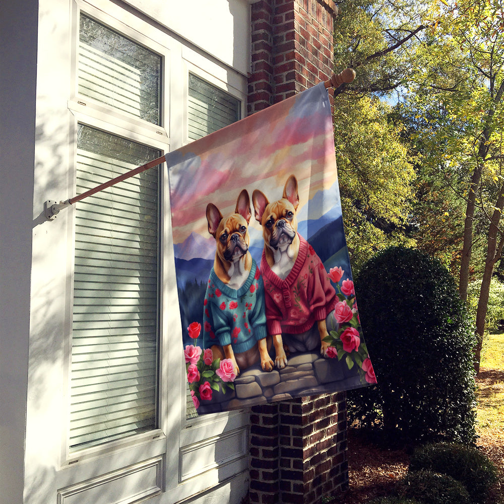 House Flag featuring breed specific French Bulldog artwork. Celebrate Valentine's Day with this Valentine's Day Large Flag. Presenting our Heavy Duty Polyester House Size Decorative Sleeve Pole Flag, a vibrant addition to enhance the aesthetic appeal of your home. This large decorative flag, measuring approximately 28 x 40 inches, offers ample coverage and visibility. Each flag is meticulously sewn and made individually, ensuring a unique piece that may slightly vary in size. It's a sleeve pole flag, designed to fit a standard decorative flag pole effortlessly. Please note that the flag pole and bracket are not included and should be purchased separately. What sets our flag apart is its dual-sided print. The design is mirrored on both sides of the fabric, allowing for uniform visibility regardless of the angle. Printed in full color, our flag showcases vibrant hues that truly stand out. To ensure lasting vibrancy and durability, the dyes are heat-set into the fabric. This ensures your flag remains bright and captivating through various weather conditions. Elevate the look of your home with our Heavy Duty Polyester House Size Decorative Sleeve Pole Flag!