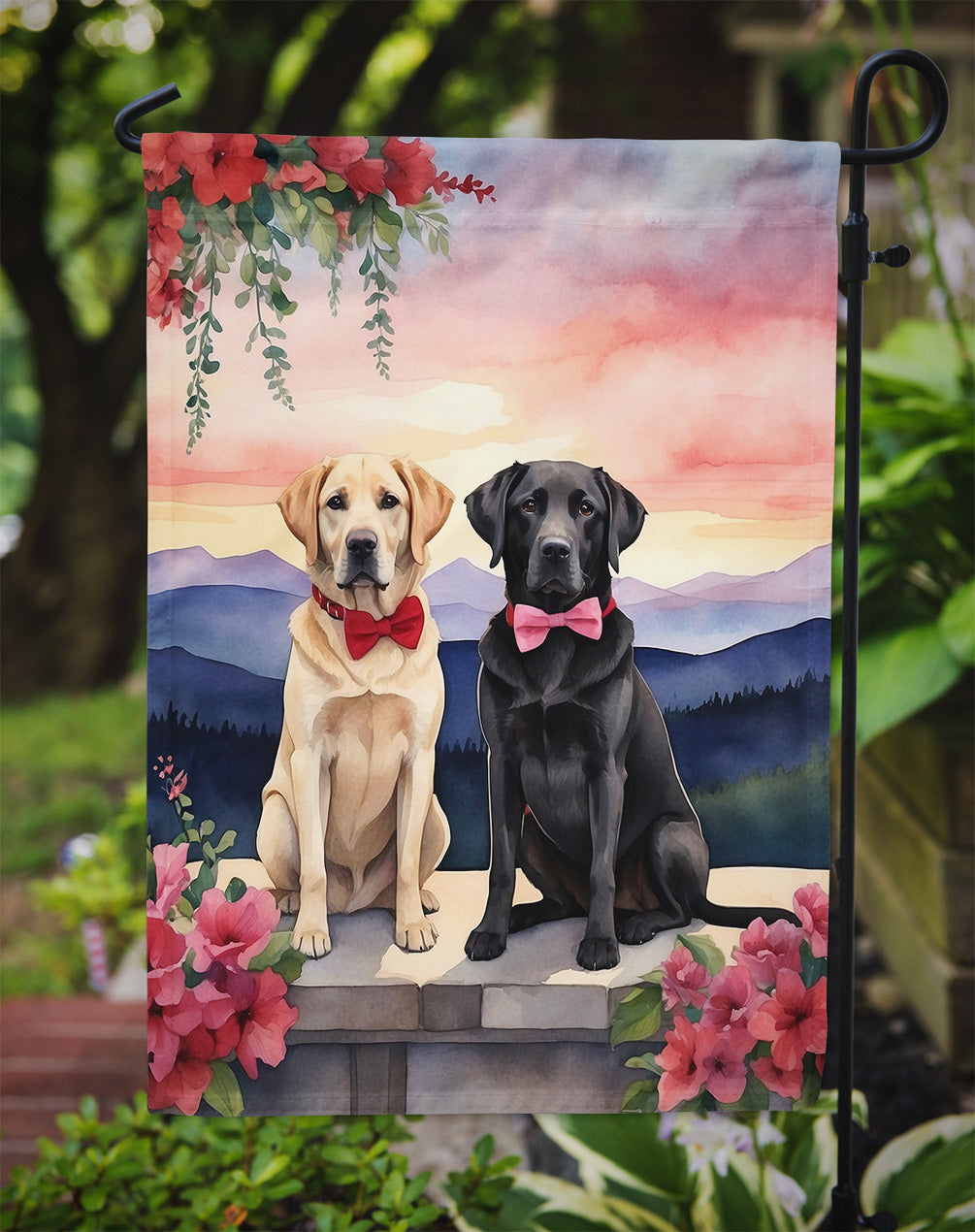 Garden Flag featuring breed specific Labrador Retriever artwork. Celebrate Valentine's Day with this Valentine's Day Garden Flag. Enhance the beauty of your garden, patio, or yard with Caroline's Treasures Decorative Garden Flag, proudly made in the USA. Crafted from two pieces of thick, double-sided polyester fabric, this 2-ply garden flag is designed to withstand various weather conditions, making it water-resistant and weatherproof. Featuring correctly readable words on both sides, this garden flag offers a delightful visual experience from any angle. With its heavier weight, it stands out among other garden flags, ensuring stability and durability even in wind, rain, and snow. Measuring approximately 11 1/4 inches by 15 1/2 inches, this flag allows you to personalize your outdoor decor. It comes with a 1 1/2-inch sleeve sewn in, allowing easy attachment to any standard garden flag stand or garden size porch hanger (sold separately). Make a statement in your outdoor space with Caroline's Treasures Decorative Garden Flag, a vibrant and high-quality flag that adds color and personality to your surroundings. Proudly made in the USA, it's a symbol of quality craftsmanship and attention to detail.