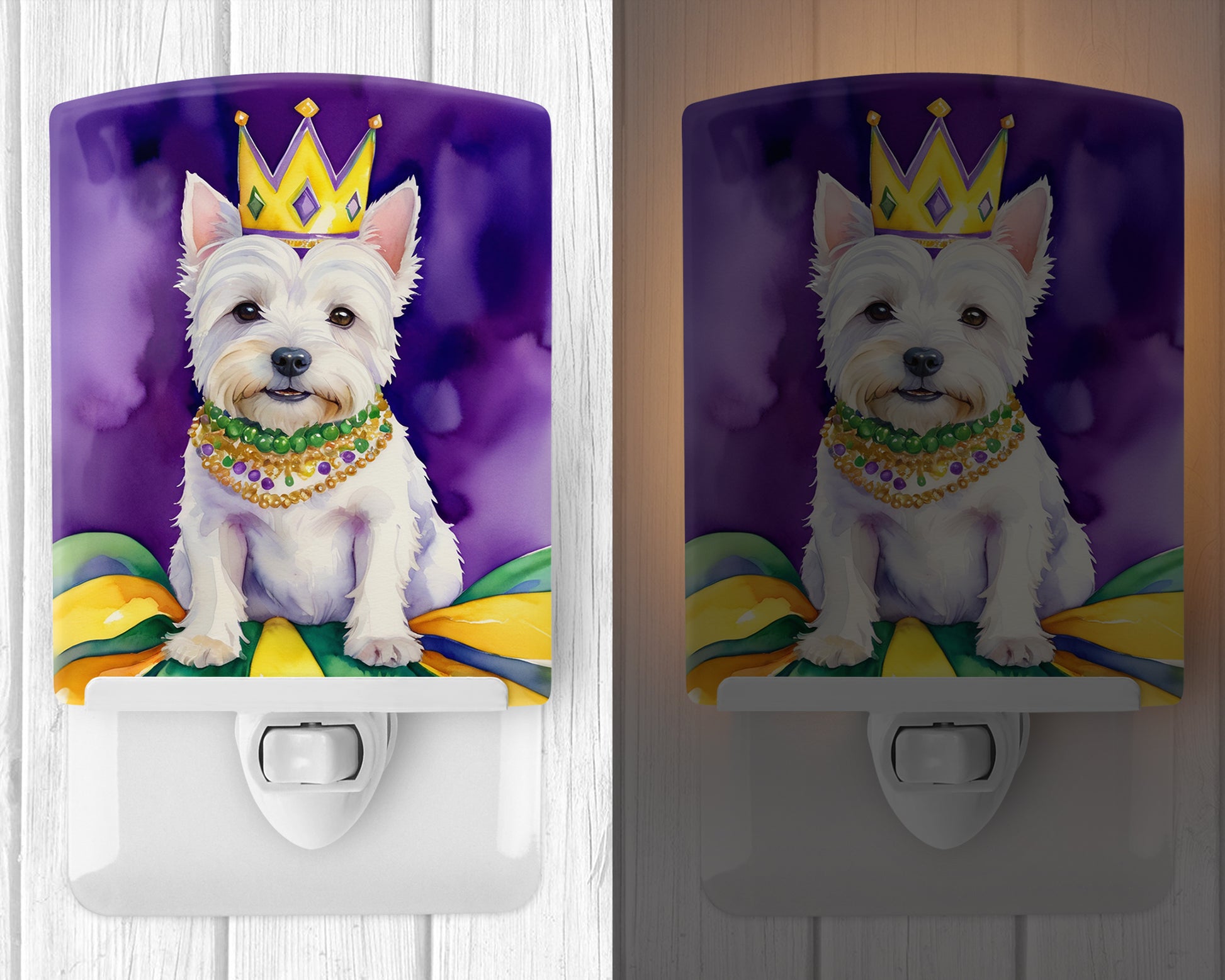 Ceramic Night Light featuring breed specific West Highland White Terrier artwork. Celebrate Mardi Gras with this Mardi Gras Night Light. Introduce a splash of artistic flair and subtle illumination to your space with the Decorative Ceramic Night Light from Caroline's Treasures. Perfect for any room, this night light seamlessly blends functionality with an aesthetic appeal, offering a stylish solution to brighten up dark corners of your home or office. Boasting a six-inch high by four-inch wide ceramic tile at the front, it showcases vivid, full-color artwork from distinguished artists, transforming a simple utility into a vibrant art piece. The artwork is securely encased in a robust metal holder, ensuring durability and longevity. Two screws are provided to firmly affix the tile into the holder. The holder extends three inches deep, housing an included bulb that emits a soft, welcoming glow. This product meets all safety standards, as evidenced by its UL approval. Proudly made in the United States from imported components, this Decorative Ceramic Night Light is not just a functional device; it's a statement piece that enhances the ambiance of your surroundings.