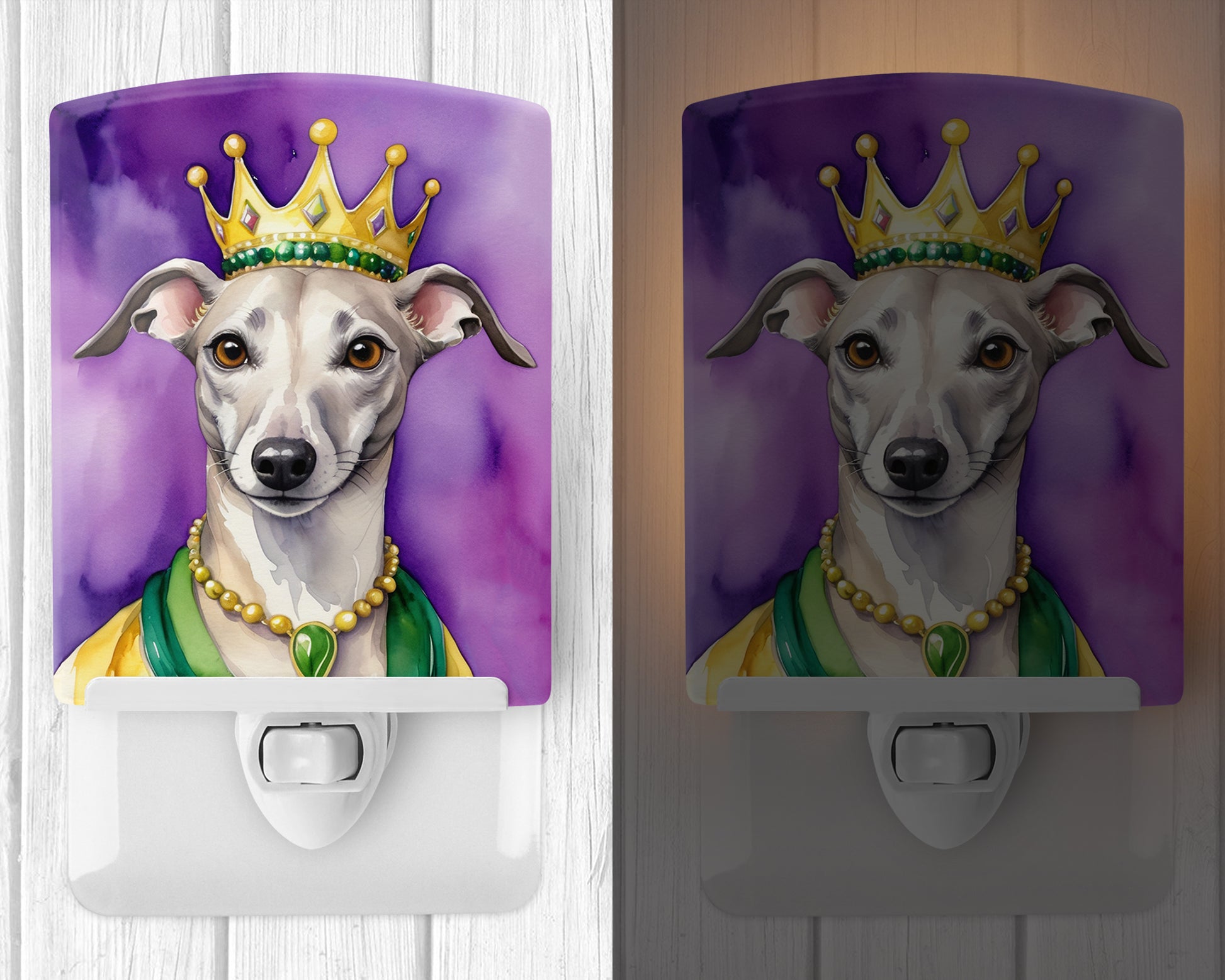 Whippet King of Mardi Gras Ceramic Night Light
