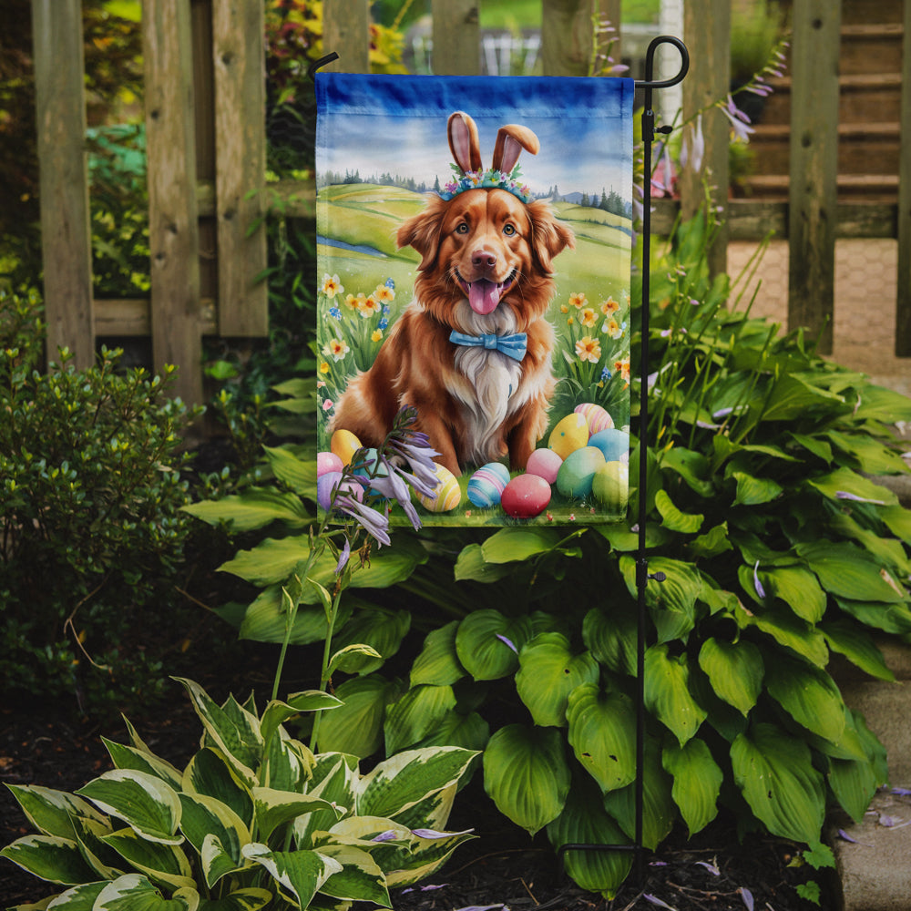Garden Flag featuring breed specific Nova Scotia Duck Tolling Retriever artwork. Celebrate Easter with this Easter Garden Flag. Enhance the beauty of your garden, patio, or yard with Caroline's Treasures Decorative Garden Flag, proudly made in the USA. Crafted from two pieces of thick, double-sided polyester fabric, this 2-ply garden flag is designed to withstand various weather conditions, making it water-resistant and weatherproof. Featuring correctly readable words on both sides, this garden flag offers a delightful visual experience from any angle. With its heavier weight, it stands out among other garden flags, ensuring stability and durability even in wind, rain, and snow. Measuring approximately 11 1/4 inches by 15 1/2 inches, this flag allows you to personalize your outdoor decor. It comes with a 1 1/2-inch sleeve sewn in, allowing easy attachment to any standard garden flag stand or garden size porch hanger (sold separately). Make a statement in your outdoor space with Caroline's Treasures Decorative Garden Flag, a vibrant and high-quality flag that adds color and personality to your surroundings. Proudly made in the USA, it's a symbol of quality craftsmanship and attention to detail.
