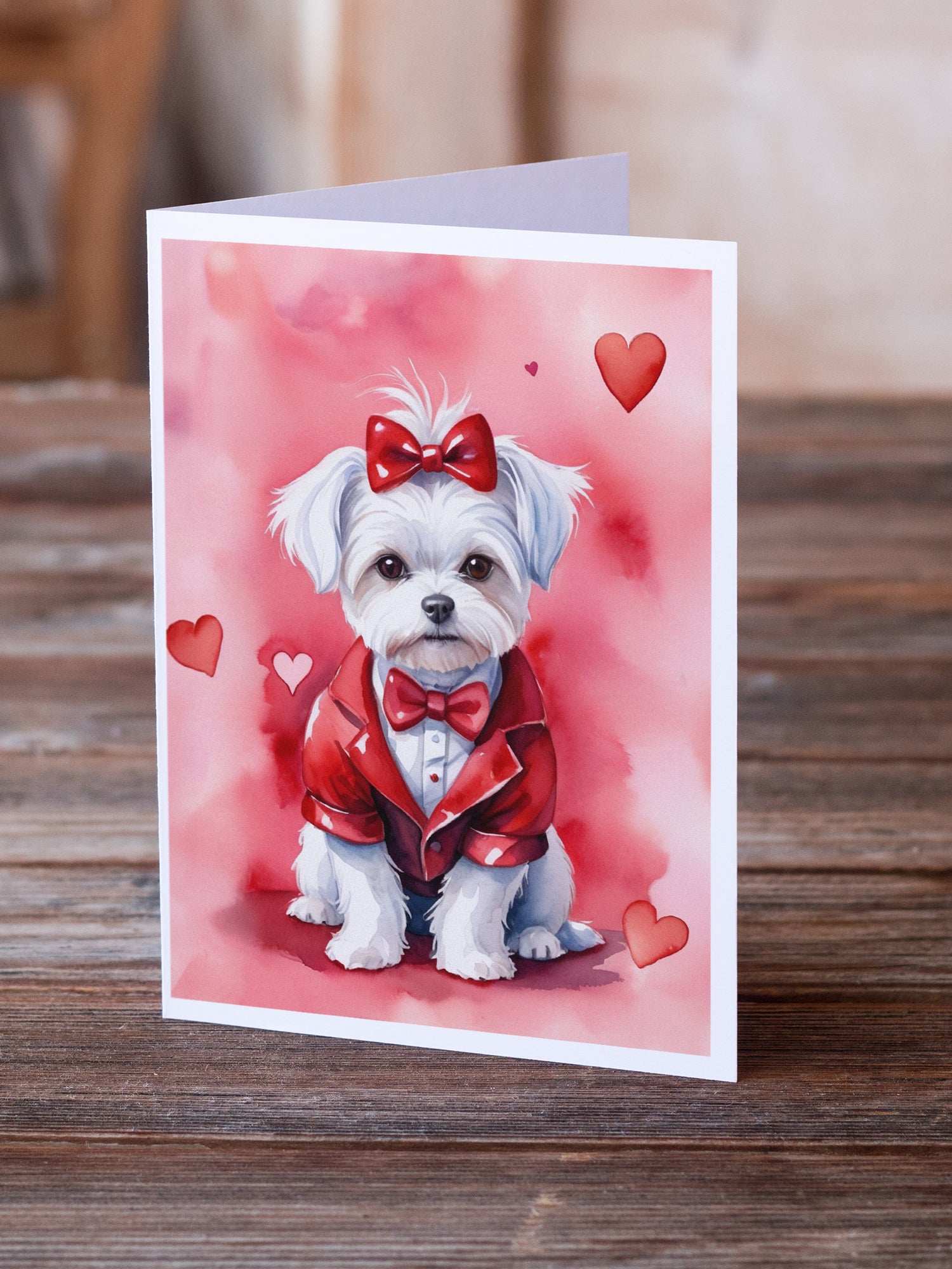 Greeting Cards Pack of 8 featuring breed specific Maltese artwork. Celebrate Valentine's Day with this Valentine's Day . Celebrate special moments with Caroline's Treasures Printed Greeting Card Pack. This pack includes eight beautifully folded 5x7 cards, accompanied by eight matching white envelopes. With blank interiors, these cards provide ample space for your personalized messages and heartfelt holiday greetings. Each card features captivating full-color artwork, meticulously printed in our facility on high-quality 80 lb cover stock or 216 GSM. The super smooth finish of the white cards enhances the visual impact of the artwork, creating a truly stunning presentation. Designed by our talented in-house artists or licensed artists, the artwork on these cards showcases their creativity and attention to detail. From vibrant illustrations to captivating designs, each card tells its own unique story. Whether it's for birthdays, anniversaries, holidays, or any special occasion, Caroline's Treasures Greeting Card Pack is the perfect way to convey your heartfelt sentiments. Share joy, love, and warm wishes with these exquisite cards and make every moment unforgettable.
