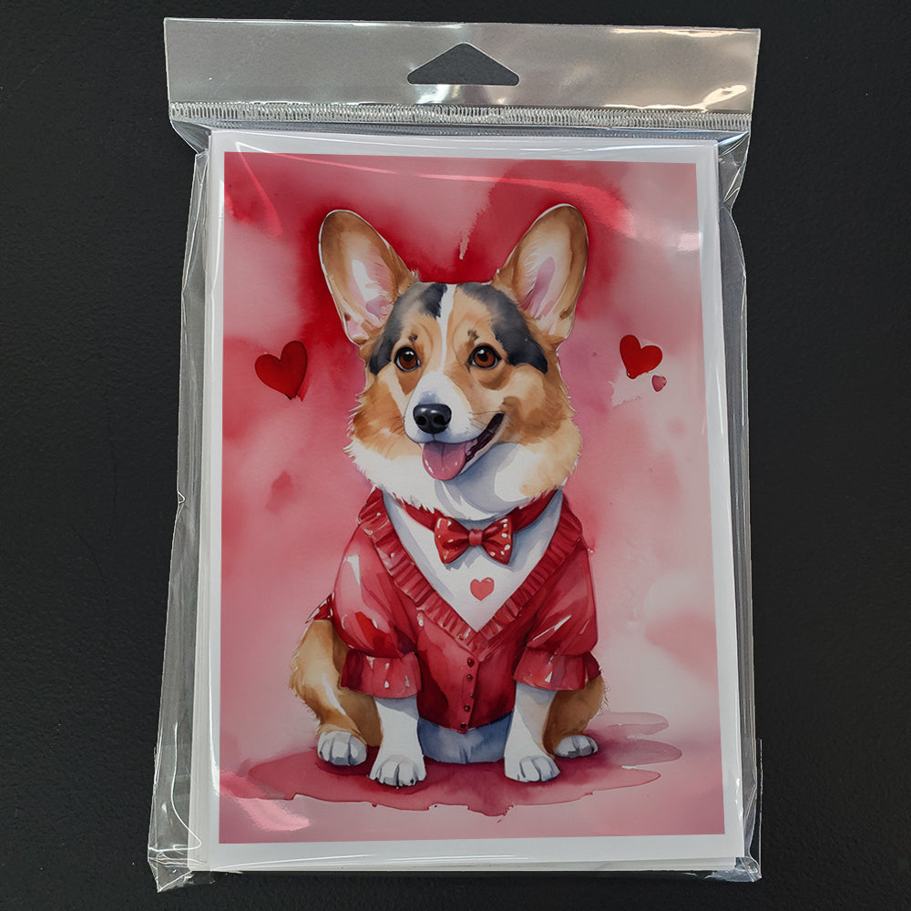 Greeting Cards Pack of 8 featuring breed specific Corgi artwork. Celebrate Valentine's Day with this Valentine's Day . Celebrate special moments with Caroline's Treasures Printed Greeting Card Pack. This pack includes eight beautifully folded 5x7 cards, accompanied by eight matching white envelopes. With blank interiors, these cards provide ample space for your personalized messages and heartfelt holiday greetings. Each card features captivating full-color artwork, meticulously printed in our facility on high-quality 80 lb cover stock or 216 GSM. The super smooth finish of the white cards enhances the visual impact of the artwork, creating a truly stunning presentation. Designed by our talented in-house artists or licensed artists, the artwork on these cards showcases their creativity and attention to detail. From vibrant illustrations to captivating designs, each card tells its own unique story. Whether it's for birthdays, anniversaries, holidays, or any special occasion, Caroline's Treasures Greeting Card Pack is the perfect way to convey your heartfelt sentiments. Share joy, love, and warm wishes with these exquisite cards and make every moment unforgettable.