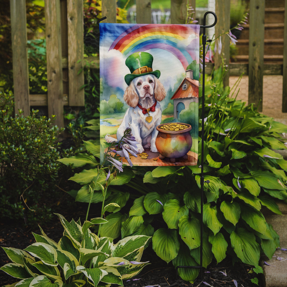 Garden Flag featuring breed specific Clumber Spaniel artwork. Celebrate St Patrick's Day with this St Patrick's Day Garden Flag. Enhance the beauty of your garden, patio, or yard with Caroline's Treasures Decorative Garden Flag, proudly made in the USA. Crafted from two pieces of thick, double-sided polyester fabric, this 2-ply garden flag is designed to withstand various weather conditions, making it water-resistant and weatherproof. Featuring correctly readable words on both sides, this garden flag offers a delightful visual experience from any angle. With its heavier weight, it stands out among other garden flags, ensuring stability and durability even in wind, rain, and snow. Measuring approximately 11 1/4 inches by 15 1/2 inches, this flag allows you to personalize your outdoor decor. It comes with a 1 1/2-inch sleeve sewn in, allowing easy attachment to any standard garden flag stand or garden size porch hanger (sold separately). Make a statement in your outdoor space with Caroline's Treasures Decorative Garden Flag, a vibrant and high-quality flag that adds color and personality to your surroundings. Proudly made in the USA, it's a symbol of quality craftsmanship and attention to detail.