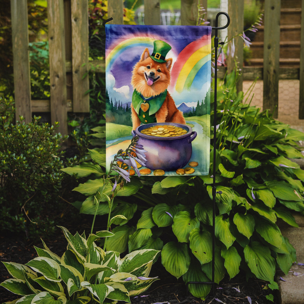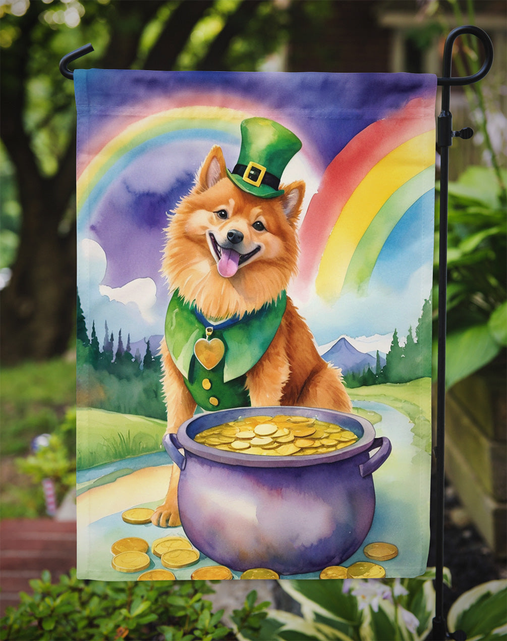 Garden Flag featuring breed specific Finnish Spitz artwork. Celebrate St Patrick's Day with this St Patrick's Day Garden Flag. Enhance the beauty of your garden, patio, or yard with Caroline's Treasures Decorative Garden Flag, proudly made in the USA. Crafted from two pieces of thick, double-sided polyester fabric, this 2-ply garden flag is designed to withstand various weather conditions, making it water-resistant and weatherproof. Featuring correctly readable words on both sides, this garden flag offers a delightful visual experience from any angle. With its heavier weight, it stands out among other garden flags, ensuring stability and durability even in wind, rain, and snow. Measuring approximately 11 1/4 inches by 15 1/2 inches, this flag allows you to personalize your outdoor decor. It comes with a 1 1/2-inch sleeve sewn in, allowing easy attachment to any standard garden flag stand or garden size porch hanger (sold separately). Make a statement in your outdoor space with Caroline's Treasures Decorative Garden Flag, a vibrant and high-quality flag that adds color and personality to your surroundings. Proudly made in the USA, it's a symbol of quality craftsmanship and attention to detail.