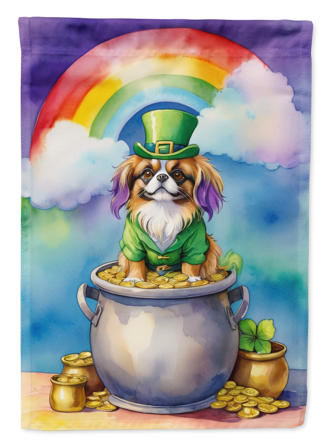 House Flag featuring breed specific Tibetan Spaniel artwork. Celebrate St Patrick's Day with this St Patrick's Day Large Flag. Presenting our Heavy Duty Polyester House Size Decorative Sleeve Pole Flag, a vibrant addition to enhance the aesthetic appeal of your home. This large decorative flag, measuring approximately 28 x 40 inches, offers ample coverage and visibility. Each flag is meticulously sewn and made individually, ensuring a unique piece that may slightly vary in size. It's a sleeve pole flag, designed to fit a standard decorative flag pole effortlessly. Please note that the flag pole and bracket are not included and should be purchased separately. What sets our flag apart is its dual-sided print. The design is mirrored on both sides of the fabric, allowing for uniform visibility regardless of the angle. Printed in full color, our flag showcases vibrant hues that truly stand out. To ensure lasting vibrancy and durability, the dyes are heat-set into the fabric. This ensures your flag remains bright and captivating through various weather conditions. Elevate the look of your home with our Heavy Duty Polyester House Size Decorative Sleeve Pole Flag!