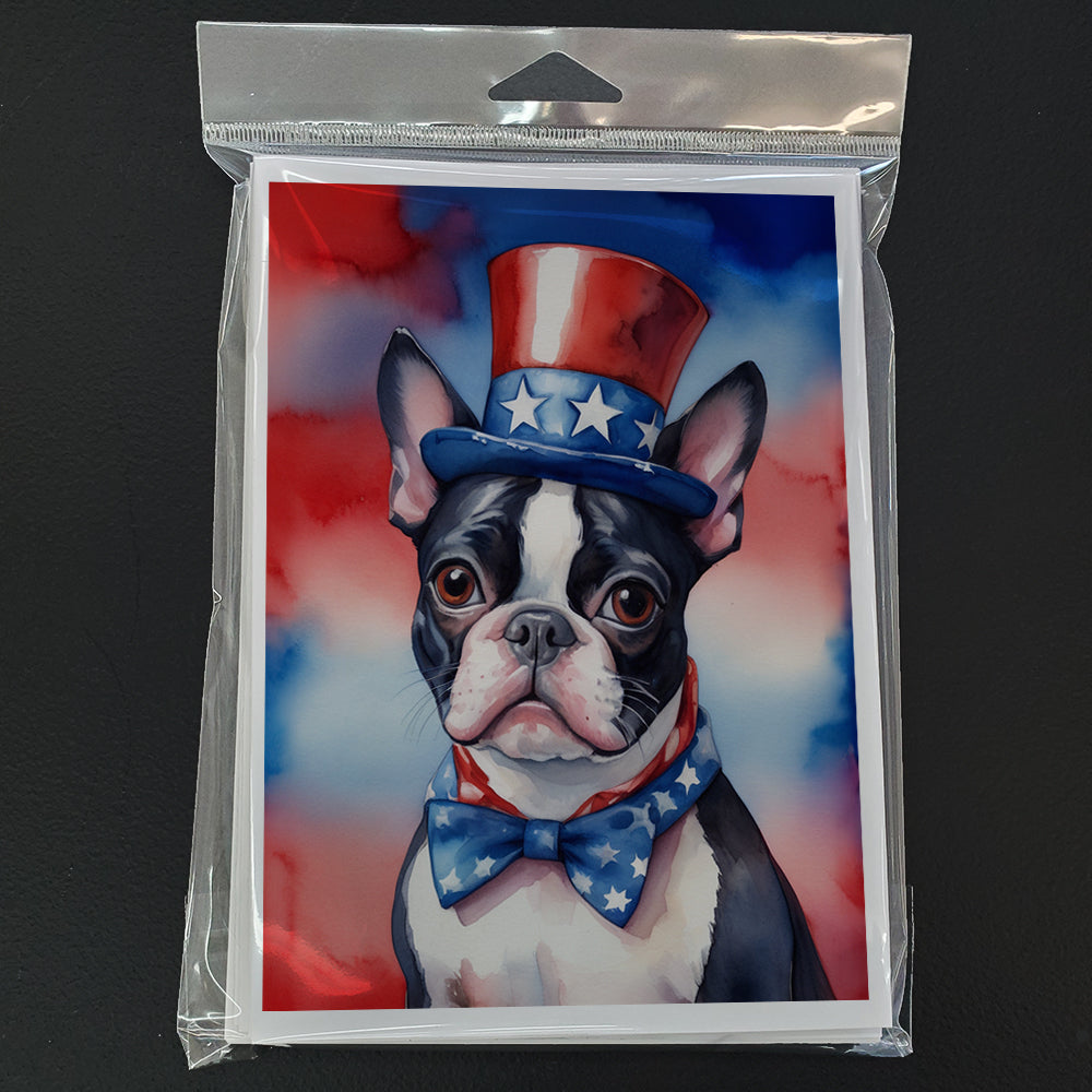 Boston Terrier Patriotic American Greeting Cards Pack of 8