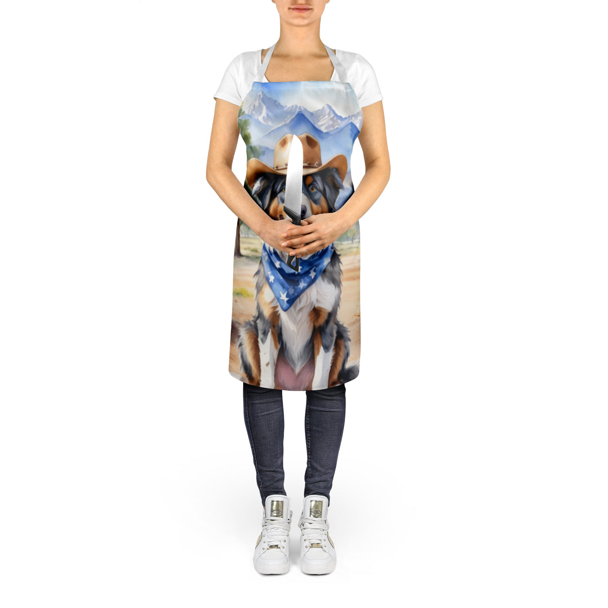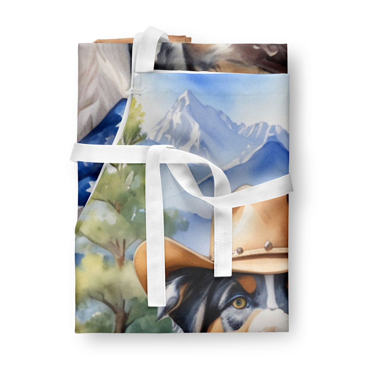 Apron featuring breed specific Australian Shepherd artwork. Elevate your cooking, baking, and grilling experiences with our versatile Kitchen or BBQ Apron. This Bib Style apron isn't just limited to culinary activities - it also serves as an excellent baking apron, artist apron, server apron, gardening apron, or even a dog grooming apron. The apron showcases vibrant full-color artwork contributed by one of our talented artists, bringing a dash of style to your daily tasks. With dimensions of approximately 27"W x 30"H, it provides ample coverage to protect your clothing from spills and splashes. Our apron is meticulously crafted from 100% Ultra Spun Polyester, known for its durability and lightweight nature. The apron comes with white tie straps, ensuring a comfortable and adjustable fit for all. It's a perfect choice for kitchen apron enthusiasts, whether you are a woman or a man. Designed for easy maintenance, this apron is fully machine washable. The quick-drying polyester material actively reduces staining, keeping your apron looking fresh and new for longer. Our beautifully designed apron isn't just a functional kitchen accessory - it's a fashion statement in the culinary world!