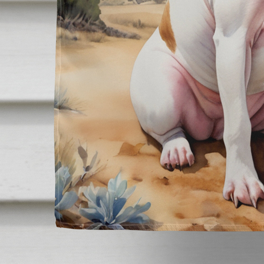 House Flag featuring breed specific Bull Terrier artwork. Presenting our Heavy Duty Polyester House Size Decorative Sleeve Pole Flag, a vibrant addition to enhance the aesthetic appeal of your home. This large decorative flag, measuring approximately 28 x 40 inches, offers ample coverage and visibility. Each flag is meticulously sewn and made individually, ensuring a unique piece that may slightly vary in size. It's a sleeve pole flag, designed to fit a standard decorative flag pole effortlessly. Please note that the flag pole and bracket are not included and should be purchased separately. What sets our flag apart is its dual-sided print. The design is mirrored on both sides of the fabric, allowing for uniform visibility regardless of the angle. Printed in full color, our flag showcases vibrant hues that truly stand out. To ensure lasting vibrancy and durability, the dyes are heat-set into the fabric. This ensures your flag remains bright and captivating through various weather conditions. Elevate the look of your home with our Heavy Duty Polyester House Size Decorative Sleeve Pole Flag!