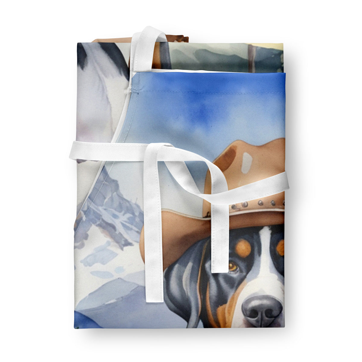 Apron featuring breed specific Greater Swiss Mountain Dog artwork. Elevate your cooking, baking, and grilling experiences with our versatile Kitchen or BBQ Apron. This Bib Style apron isn't just limited to culinary activities - it also serves as an excellent baking apron, artist apron, server apron, gardening apron, or even a dog grooming apron. The apron showcases vibrant full-color artwork contributed by one of our talented artists, bringing a dash of style to your daily tasks. With dimensions of approximately 27"W x 30"H, it provides ample coverage to protect your clothing from spills and splashes. Our apron is meticulously crafted from 100% Ultra Spun Polyester, known for its durability and lightweight nature. The apron comes with white tie straps, ensuring a comfortable and adjustable fit for all. It's a perfect choice for kitchen apron enthusiasts, whether you are a woman or a man. Designed for easy maintenance, this apron is fully machine washable. The quick-drying polyester material actively reduces staining, keeping your apron looking fresh and new for longer. Our beautifully designed apron isn't just a functional kitchen accessory - it's a fashion statement in the culinary world!