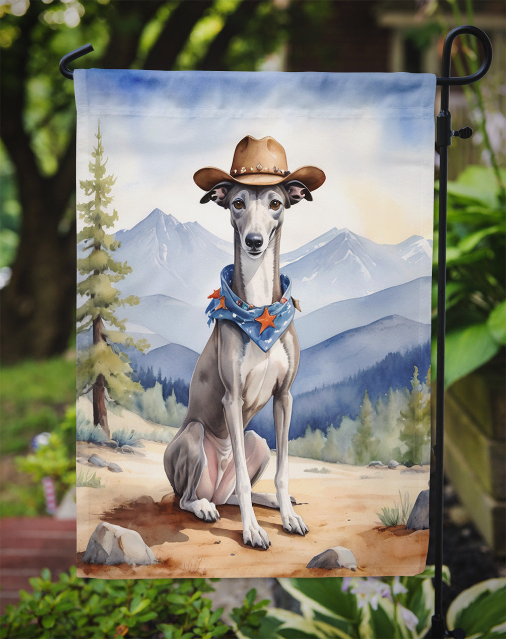 Greyhound Cowboy Welcome Garden Flag