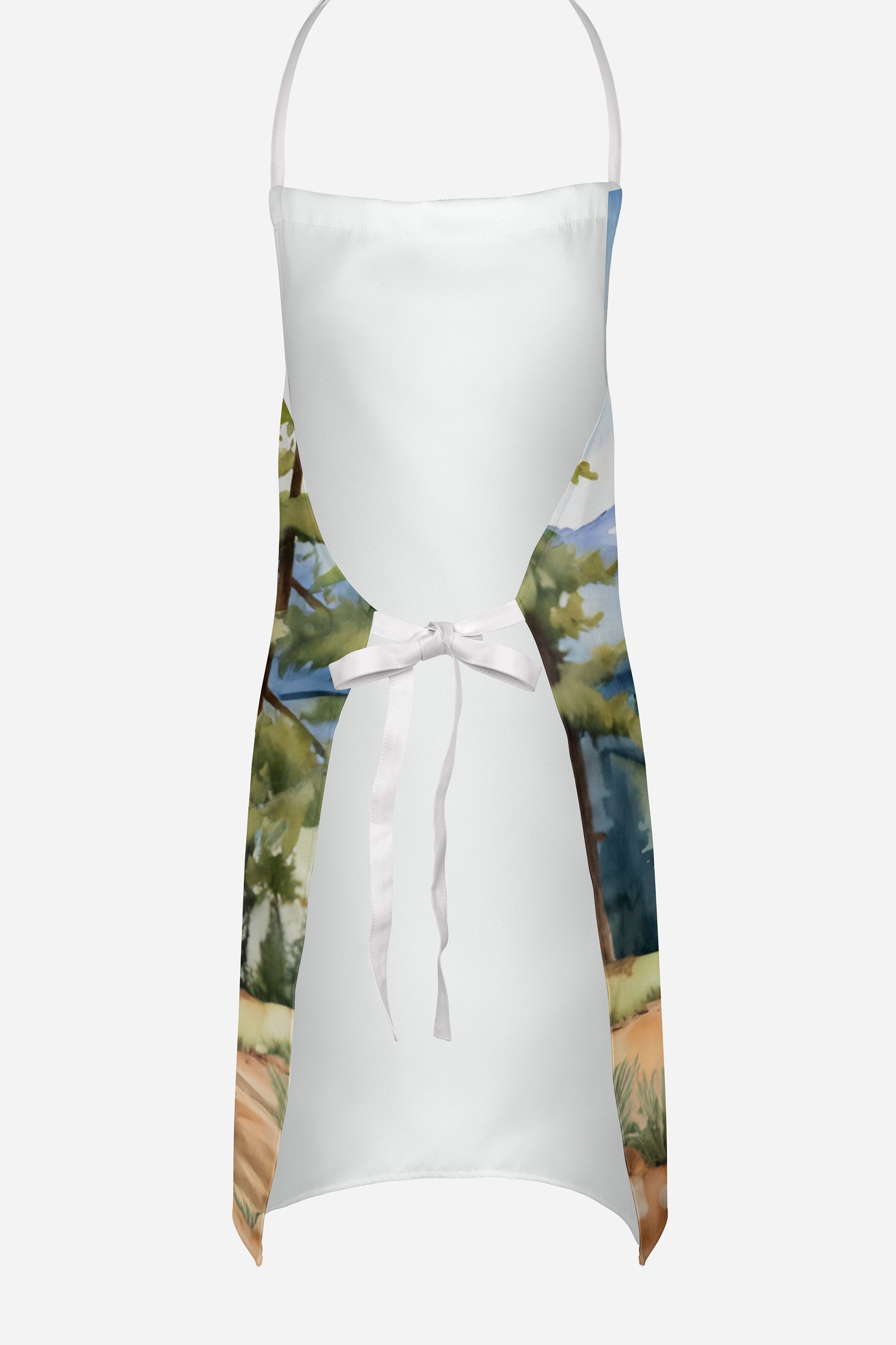 Apron featuring breed specific Keeshond artwork. Elevate your cooking, baking, and grilling experiences with our versatile Kitchen or BBQ Apron. This Bib Style apron isn't just limited to culinary activities - it also serves as an excellent baking apron, artist apron, server apron, gardening apron, or even a dog grooming apron. The apron showcases vibrant full-color artwork contributed by one of our talented artists, bringing a dash of style to your daily tasks. With dimensions of approximately 27"W x 30"H, it provides ample coverage to protect your clothing from spills and splashes. Our apron is meticulously crafted from 100% Ultra Spun Polyester, known for its durability and lightweight nature. The apron comes with white tie straps, ensuring a comfortable and adjustable fit for all. It's a perfect choice for kitchen apron enthusiasts, whether you are a woman or a man. Designed for easy maintenance, this apron is fully machine washable. The quick-drying polyester material actively reduces staining, keeping your apron looking fresh and new for longer. Our beautifully designed apron isn't just a functional kitchen accessory - it's a fashion statement in the culinary world!