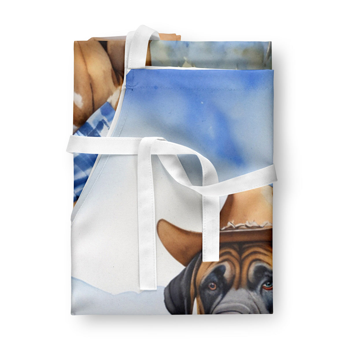 Apron featuring breed specific Mastiff artwork. Elevate your cooking, baking, and grilling experiences with our versatile Kitchen or BBQ Apron. This Bib Style apron isn't just limited to culinary activities - it also serves as an excellent baking apron, artist apron, server apron, gardening apron, or even a dog grooming apron. The apron showcases vibrant full-color artwork contributed by one of our talented artists, bringing a dash of style to your daily tasks. With dimensions of approximately 27"W x 30"H, it provides ample coverage to protect your clothing from spills and splashes. Our apron is meticulously crafted from 100% Ultra Spun Polyester, known for its durability and lightweight nature. The apron comes with white tie straps, ensuring a comfortable and adjustable fit for all. It's a perfect choice for kitchen apron enthusiasts, whether you are a woman or a man. Designed for easy maintenance, this apron is fully machine washable. The quick-drying polyester material actively reduces staining, keeping your apron looking fresh and new for longer. Our beautifully designed apron isn't just a functional kitchen accessory - it's a fashion statement in the culinary world!