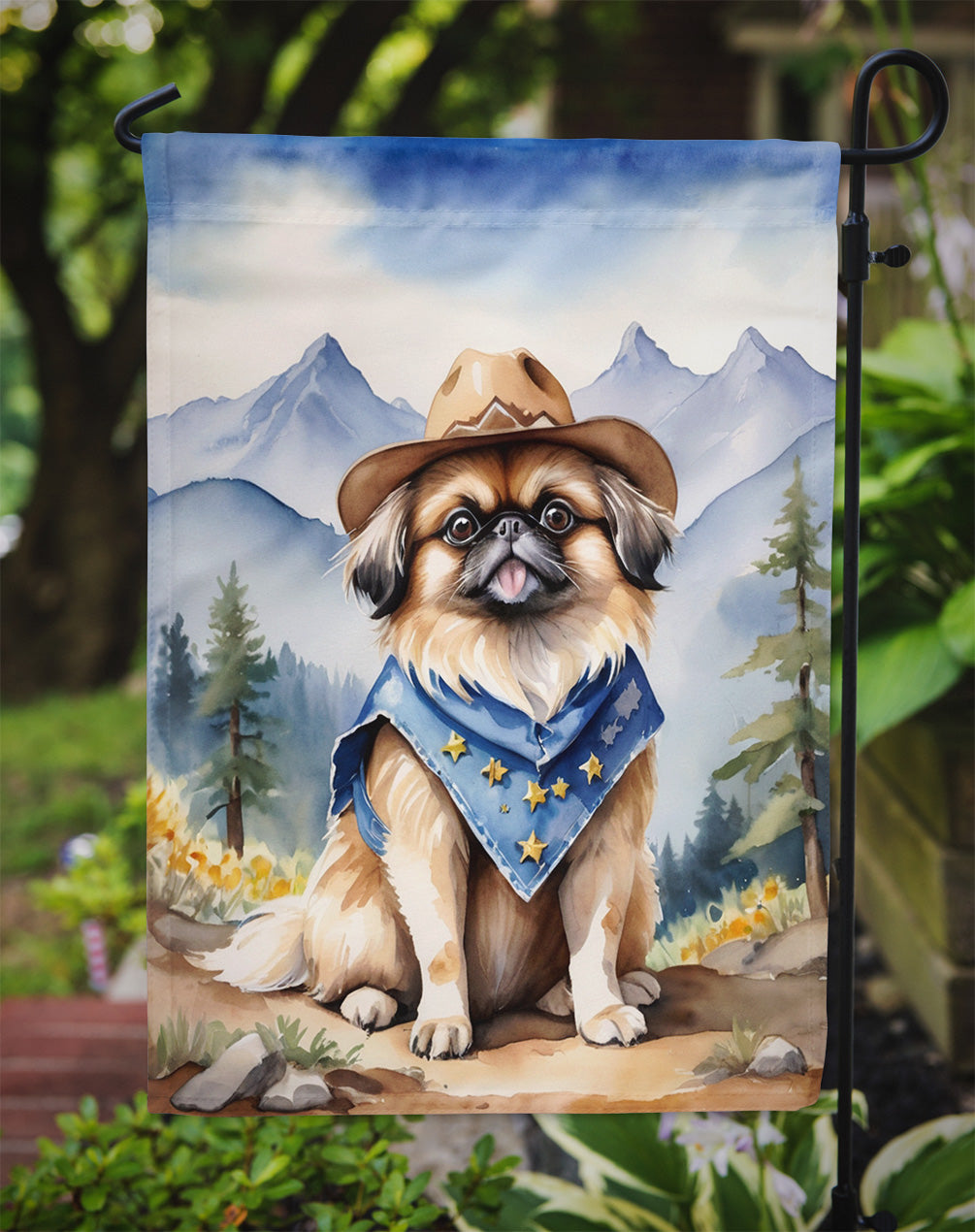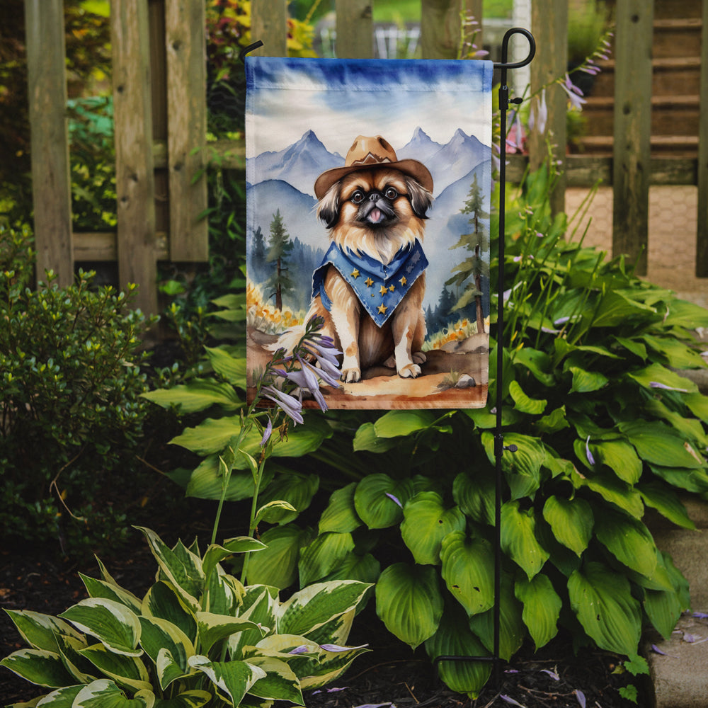 Garden Flag featuring breed specific Pekingese artwork. Enhance the beauty of your garden, patio, or yard with Caroline's Treasures Decorative Garden Flag, proudly made in the USA. Crafted from two pieces of thick, double-sided polyester fabric, this 2-ply garden flag is designed to withstand various weather conditions, making it water-resistant and weatherproof. Featuring correctly readable words on both sides, this garden flag offers a delightful visual experience from any angle. With its heavier weight, it stands out among other garden flags, ensuring stability and durability even in wind, rain, and snow. Measuring approximately 11 1/4 inches by 15 1/2 inches, this flag allows you to personalize your outdoor decor. It comes with a 1 1/2-inch sleeve sewn in, allowing easy attachment to any standard garden flag stand or garden size porch hanger (sold separately). Make a statement in your outdoor space with Caroline's Treasures Decorative Garden Flag, a vibrant and high-quality flag that adds color and personality to your surroundings. Proudly made in the USA, it's a symbol of quality craftsmanship and attention to detail.