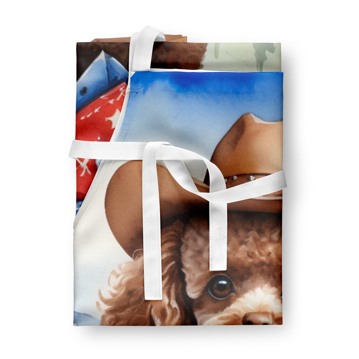 Apron featuring breed specific Poodle artwork. Elevate your cooking, baking, and grilling experiences with our versatile Kitchen or BBQ Apron. This Bib Style apron isn't just limited to culinary activities - it also serves as an excellent baking apron, artist apron, server apron, gardening apron, or even a dog grooming apron. The apron showcases vibrant full-color artwork contributed by one of our talented artists, bringing a dash of style to your daily tasks. With dimensions of approximately 27"W x 30"H, it provides ample coverage to protect your clothing from spills and splashes. Our apron is meticulously crafted from 100% Ultra Spun Polyester, known for its durability and lightweight nature. The apron comes with white tie straps, ensuring a comfortable and adjustable fit for all. It's a perfect choice for kitchen apron enthusiasts, whether you are a woman or a man. Designed for easy maintenance, this apron is fully machine washable. The quick-drying polyester material actively reduces staining, keeping your apron looking fresh and new for longer. Our beautifully designed apron isn't just a functional kitchen accessory - it's a fashion statement in the culinary world!