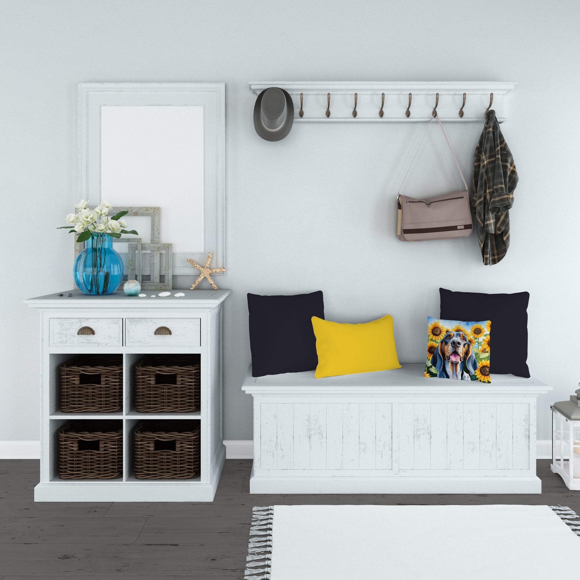 Throw Pillow featuring breed specific American English Coonhound artwork. Add a touch of vibrancy and comfort to your outdoor seating with Caroline's Treasures Fabric Decorative Pillow. Measuring approximately 14 inches by 14 inches, this outdoor pillow is crafted to elevate the appeal of your patio furniture, infusing it with vivid color and artistic flair. The pillow includes a 100% Polyester Fabric sham filled with a quality pillow form to provide superior comfort. Innovatively made from our brand new material, specifically woven for its water resistance, this pillow is designed for durability. The soft canvas fabric offers versatility in use, fit for your indoor couch or your outdoor patio, porch, or veranda. The fabric is dyed with colorfast dyes built for resilience against weather conditions, ensuring the pillow retains its beauty over time. Constructed by sewing three fabric pieces to create a sham, the polyester insert is then nestled inside to form the pillow, resulting in an overstuffed pillow that maintains its shape. Both the sham and the pillow insert are proudly made in the United States. As the pillows are handcrafted, there may be minor variations in size, further enhancing their unique charm. Experience comfort in style with Caroline's Treasures Fabric Decorative Pillow.