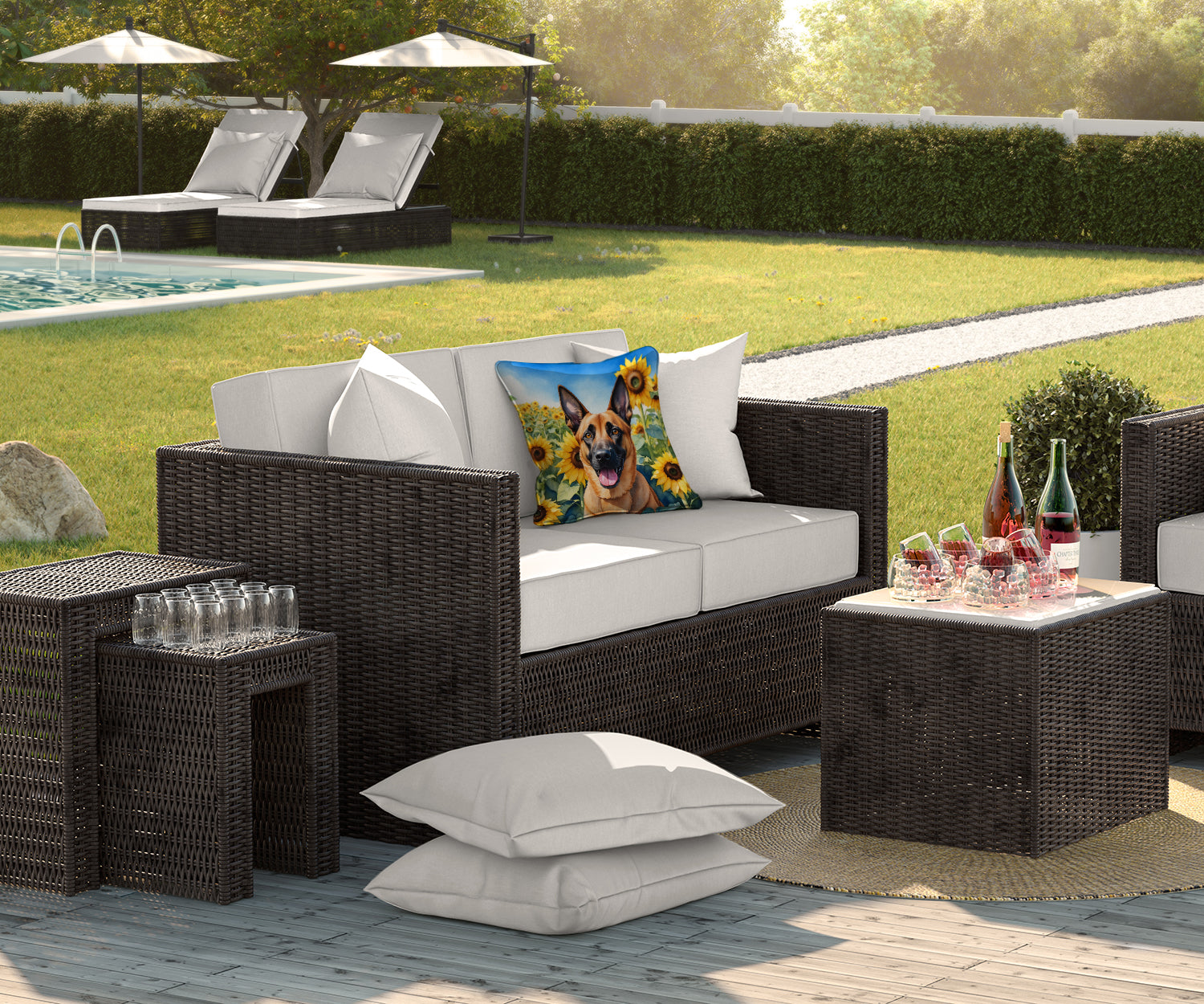 Throw Pillow featuring breed specific Belgian Malinois artwork. Revitalize your outdoor or indoor living space with Caroline's Treasures 18x18 Fabric Decorative Pillow. With a generously sized dimension of approximately 18 inches by 18 inches, this pillow makes a comfortable and aesthetic addition to any seating area. Made from a unique, water-resistant material developed by Caroline's Treasures, the pillow sham is 100% polyester fabric that's durable and ready to weather any condition. Its vibrant, full-color artwork will not fade over time as it is dyed with color-fast dyes. Whether you place it on your patio furniture, porch, veranda, or indoor couch, its soft canvas fabric ensures a cozy experience. The pillow is handcrafted in the United States, featuring a sham created from three pieces of fabric and a polyester insert for enduring shape and overstuffed comfort. Despite being robustly built to endure the outdoors, it is as soft and snug as your favorite indoor cushions. Please note, as all our pillows are handmade, sizes may vary slightly, adding to the charm of this unique decorative item.