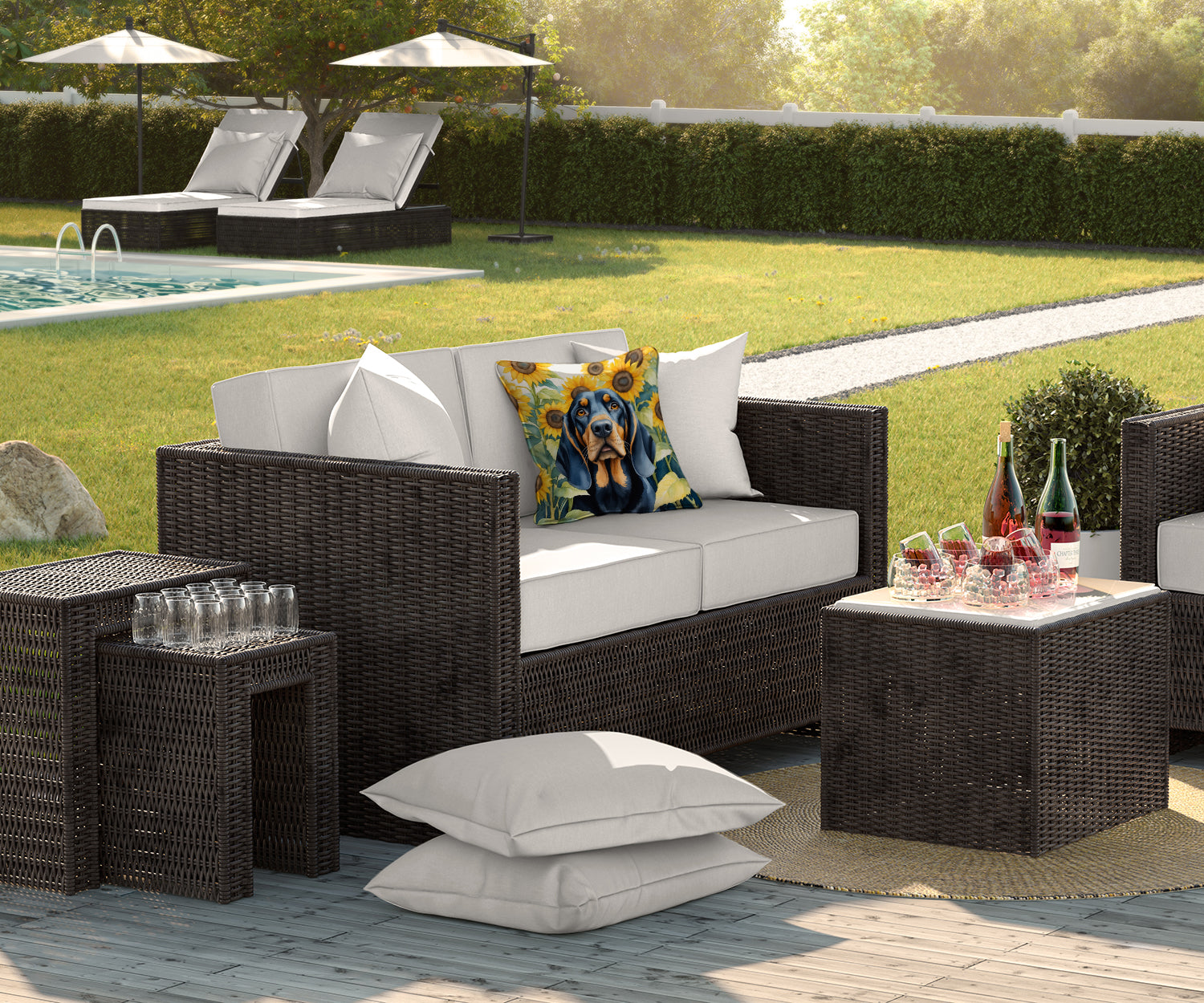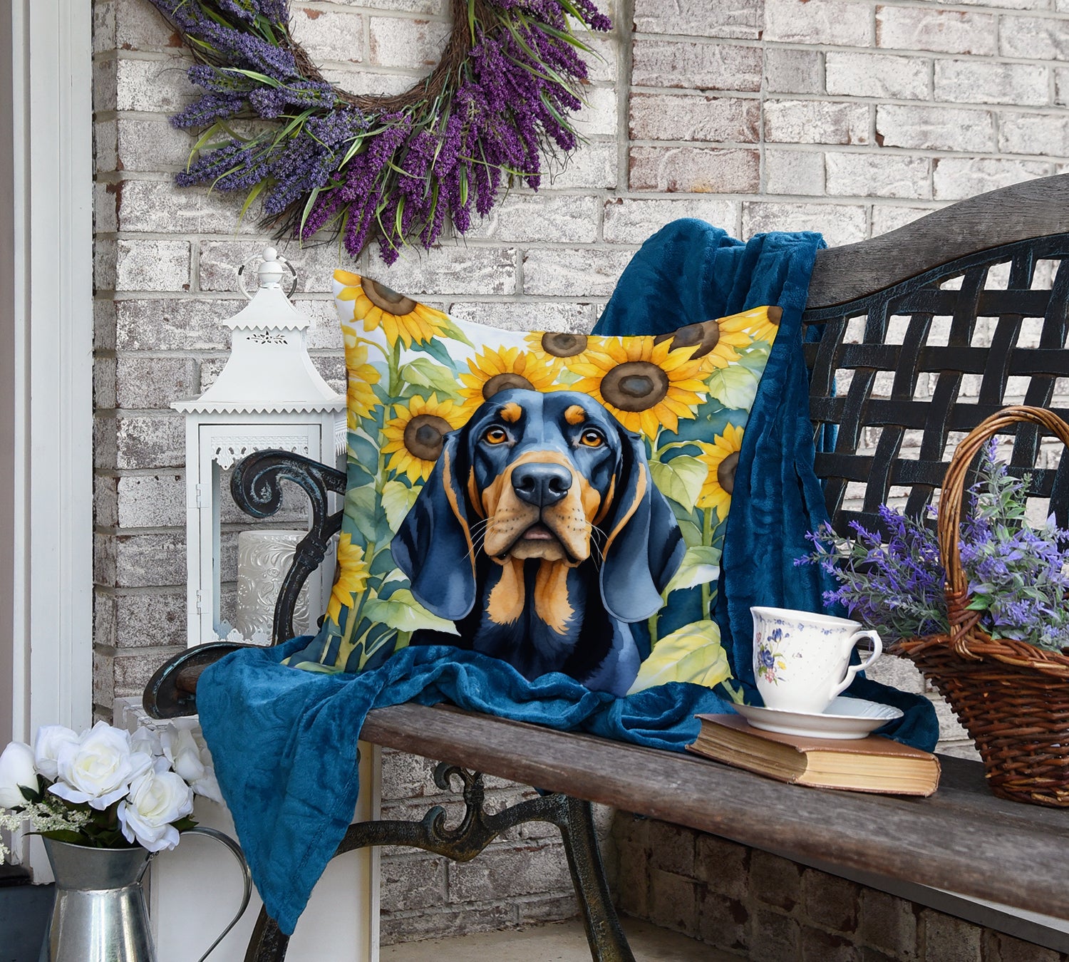 Black and Tan Coonhound in Sunflowers Throw Pillow