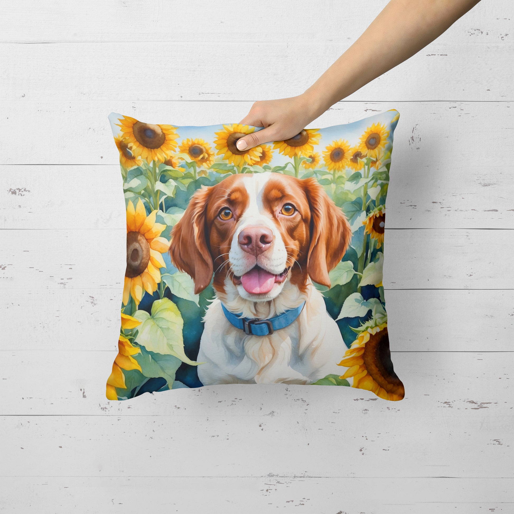 Throw Pillow featuring breed specific Brittany Spaniel artwork. Revitalize your outdoor or indoor living space with Caroline's Treasures 18x18 Fabric Decorative Pillow. With a generously sized dimension of approximately 18 inches by 18 inches, this pillow makes a comfortable and aesthetic addition to any seating area. Made from a unique, water-resistant material developed by Caroline's Treasures, the pillow sham is 100% polyester fabric that's durable and ready to weather any condition. Its vibrant, full-color artwork will not fade over time as it is dyed with color-fast dyes. Whether you place it on your patio furniture, porch, veranda, or indoor couch, its soft canvas fabric ensures a cozy experience. The pillow is handcrafted in the United States, featuring a sham created from three pieces of fabric and a polyester insert for enduring shape and overstuffed comfort. Despite being robustly built to endure the outdoors, it is as soft and snug as your favorite indoor cushions. Please note, as all our pillows are handmade, sizes may vary slightly, adding to the charm of this unique decorative item.
