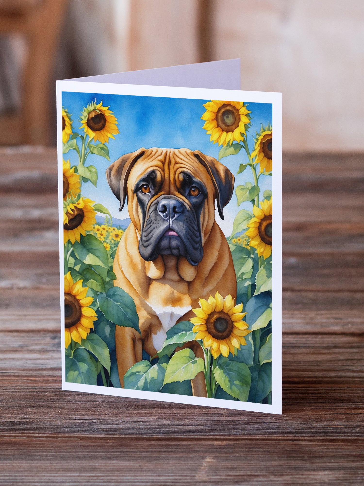 Bullmastiff in Sunflowers Greeting Cards Pack of 8