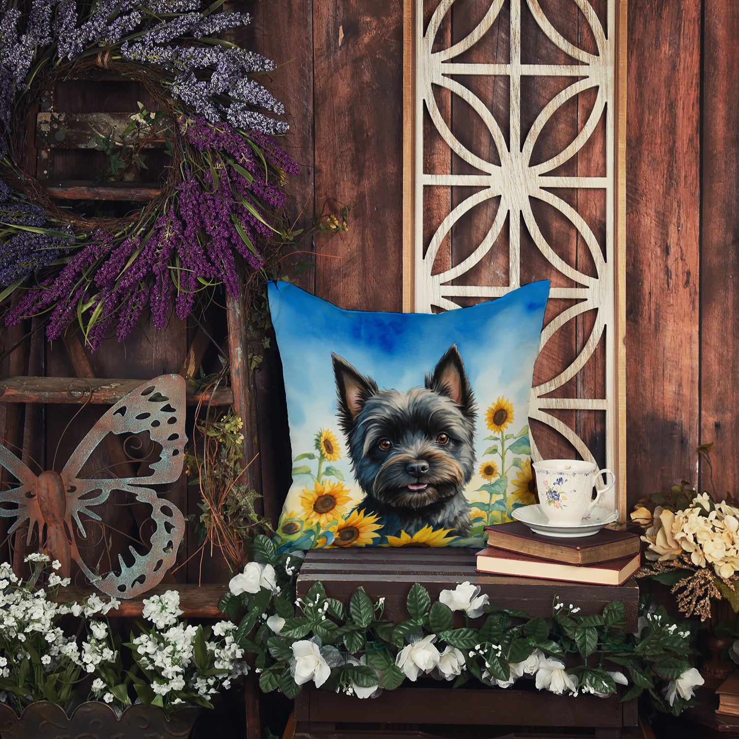 Throw Pillow featuring breed specific Cairn Terrier artwork. Add a touch of vibrancy and comfort to your outdoor seating with Caroline's Treasures Fabric Decorative Pillow. Measuring approximately 14 inches by 14 inches, this outdoor pillow is crafted to elevate the appeal of your patio furniture, infusing it with vivid color and artistic flair. The pillow includes a 100% Polyester Fabric sham filled with a quality pillow form to provide superior comfort. Innovatively made from our brand new material, specifically woven for its water resistance, this pillow is designed for durability. The soft canvas fabric offers versatility in use, fit for your indoor couch or your outdoor patio, porch, or veranda. The fabric is dyed with colorfast dyes built for resilience against weather conditions, ensuring the pillow retains its beauty over time. Constructed by sewing three fabric pieces to create a sham, the polyester insert is then nestled inside to form the pillow, resulting in an overstuffed pillow that maintains its shape. Both the sham and the pillow insert are proudly made in the United States. As the pillows are handcrafted, there may be minor variations in size, further enhancing their unique charm. Experience comfort in style with Caroline's Treasures Fabric Decorative Pillow.