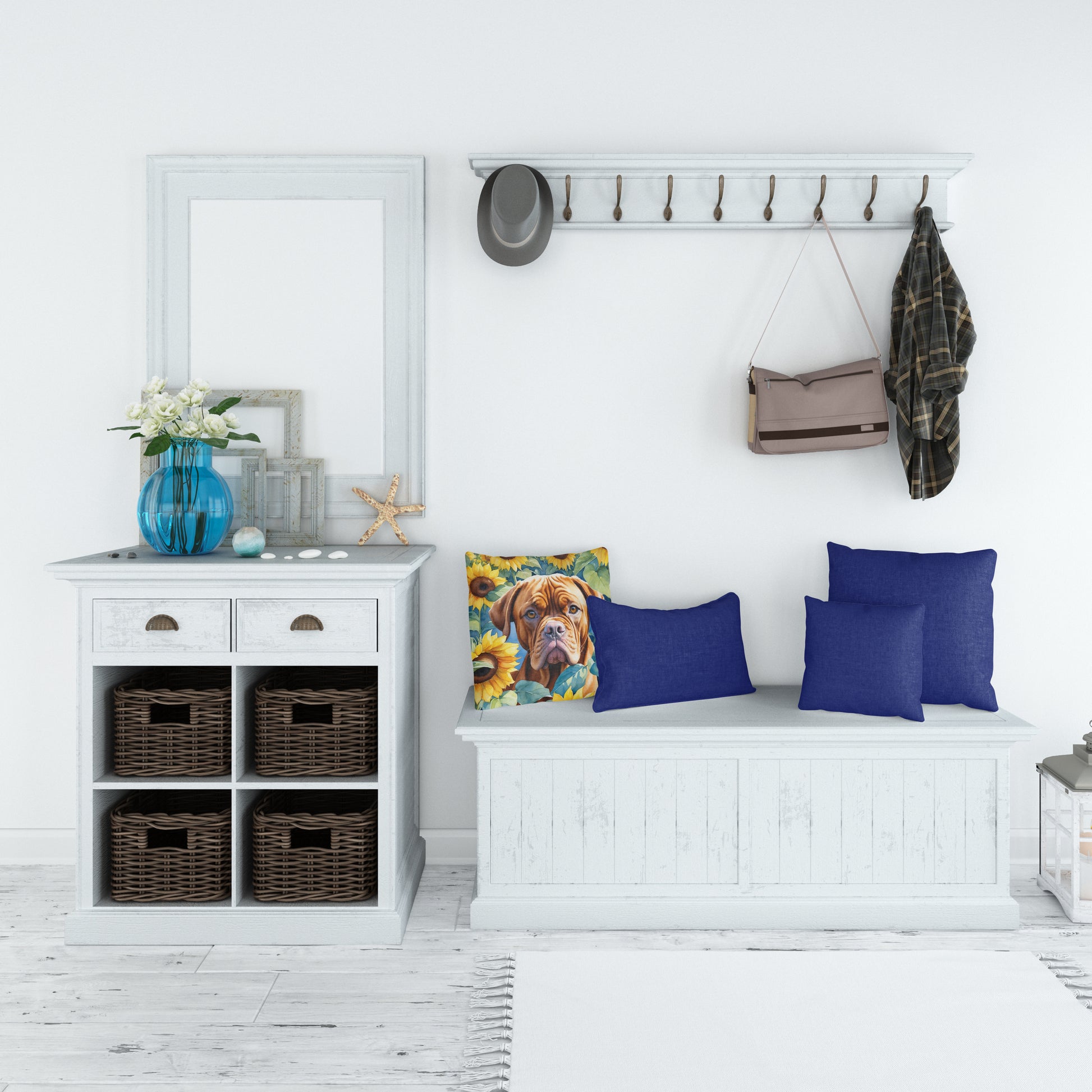 Dogue de Bordeaux in Sunflowers Throw Pillow