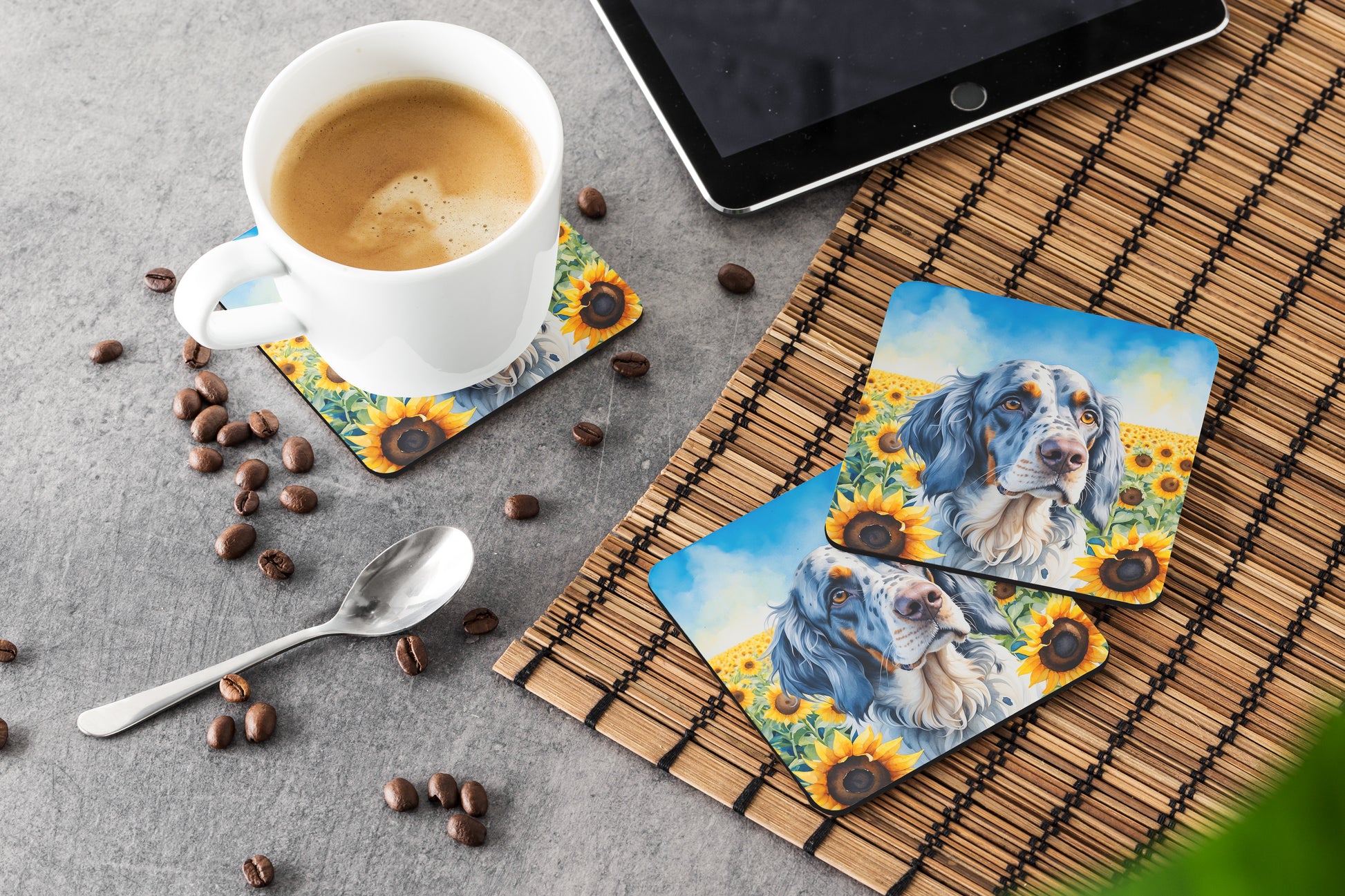 Foam Coasters featuring breed specific English Setter artwork. Presenting our Set of 4 Foam Coasters, a stylish and practical addition to your table setting. Each square coaster, measuring 3 1/2 inches by 3 1/2 inches, is perfectly sized to accommodate various drinkware, from coffee mugs to tumblers. These coasters stand out with their full-color artwork, permanently dyed onto the material for a vibrant and fade-resistant finish. They're not just functional, they're a fashionable statement, adding a touch of flair to any gathering or event. Our foam coasters serve a dual purpose - they protect your table from water stains and are perfect for both hot and cold drinks. The material used is similar to that of our high-quality mouse pads, ensuring durability and heat resistance. These coasters are easy to maintain - simply wash them in the top of your dishwasher and lay flat to dry. The design won't come off, ensuring they retain their vivid colors for years. Pair them with one of our insulated coolers or huggers for a cohesive, thoughtful gift set. Enhance your beverage experience with our Set of 4 Foam Coasters.
