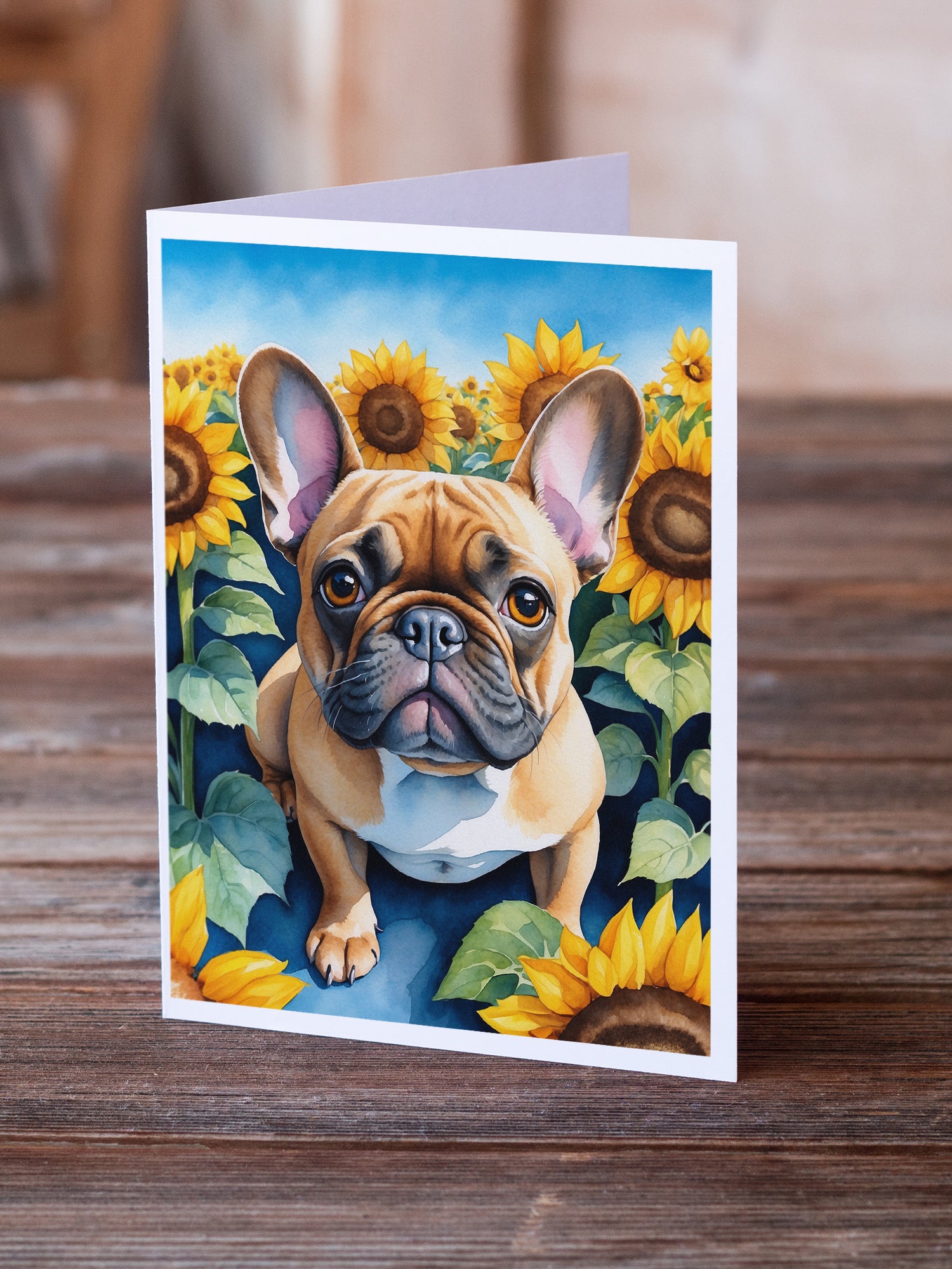 French Bulldog in Sunflowers Greeting Cards Pack of 8