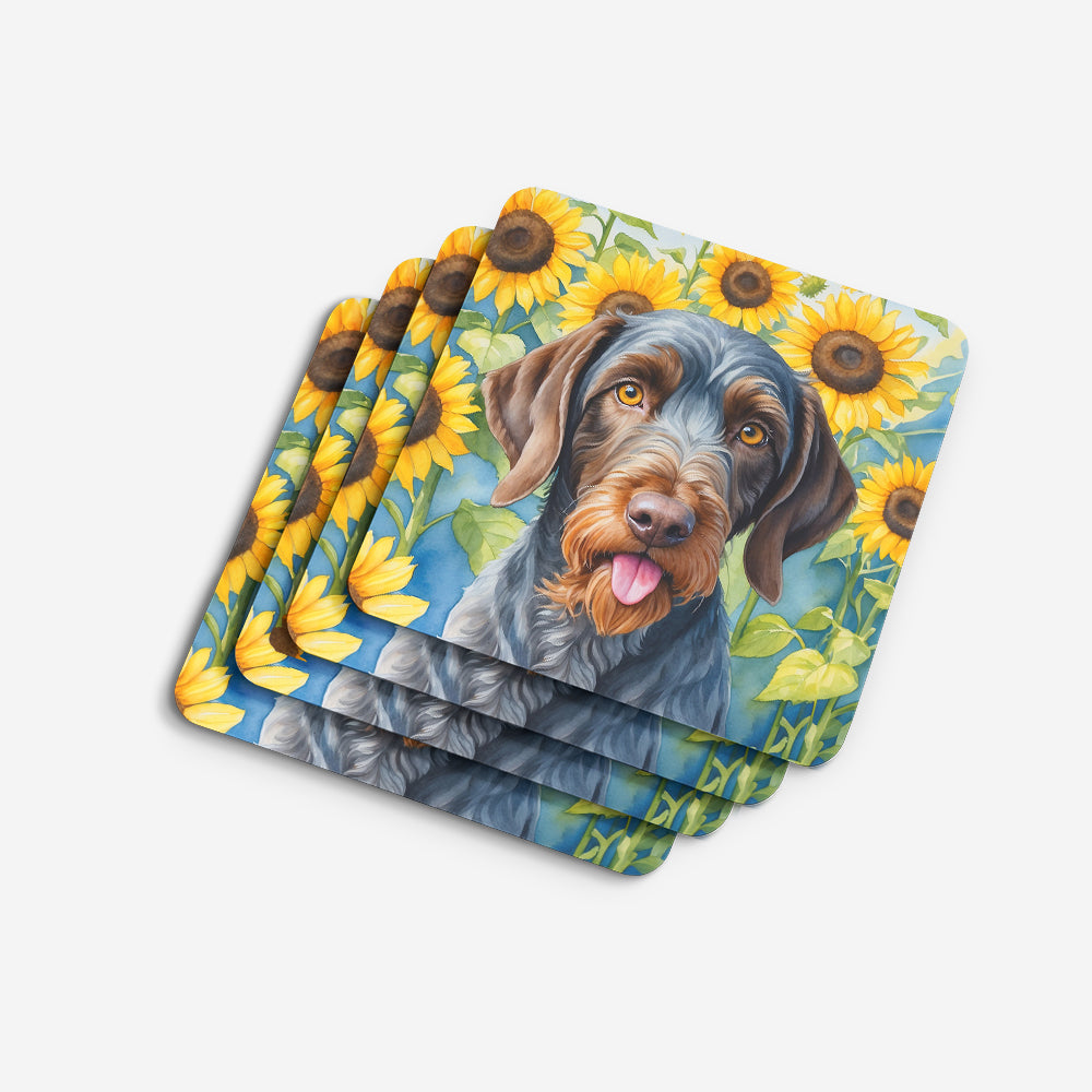 German Wirehaired Pointer in Sunflowers Foam Coasters