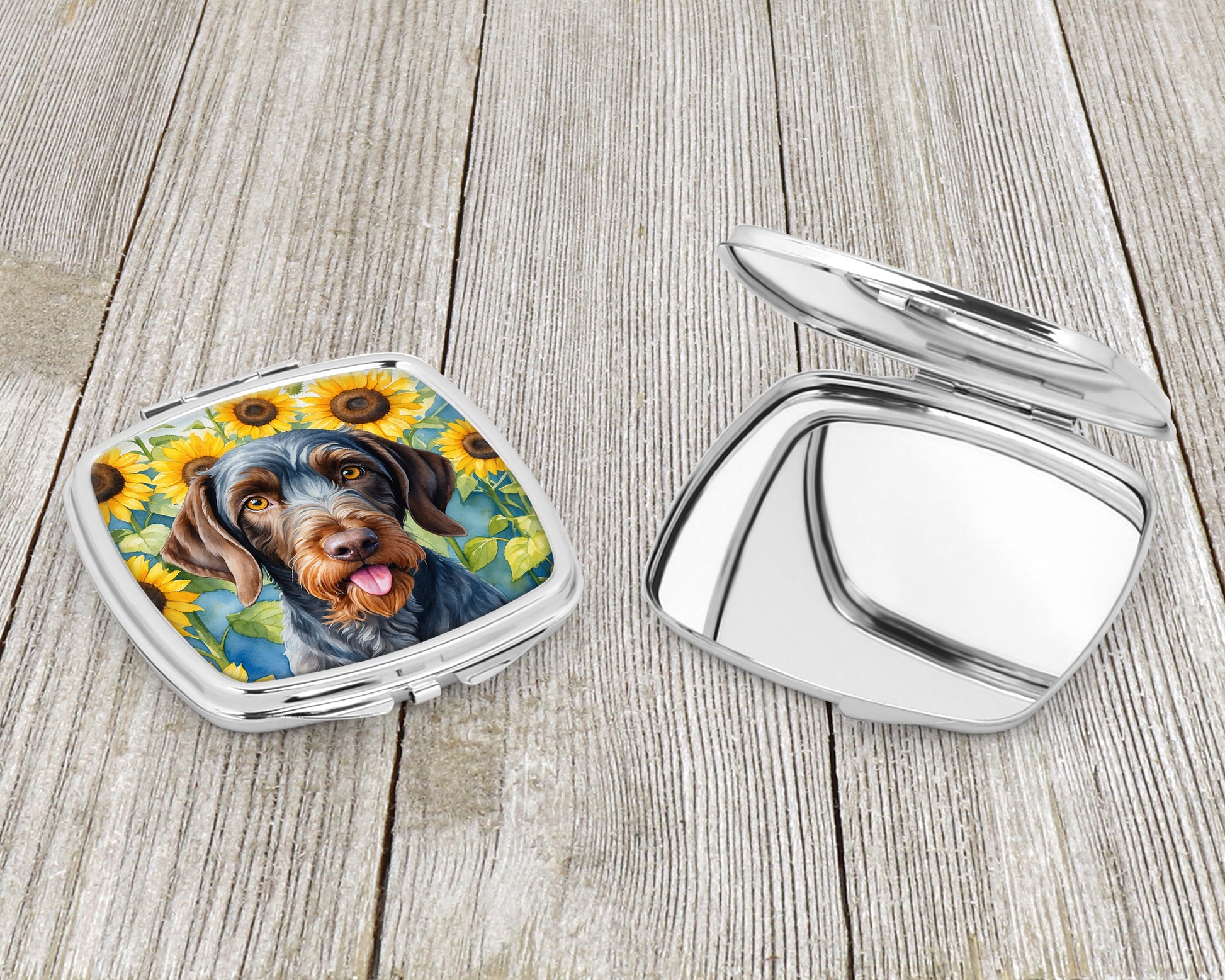 German Wirehaired Pointer in Sunflowers Compact Mirror