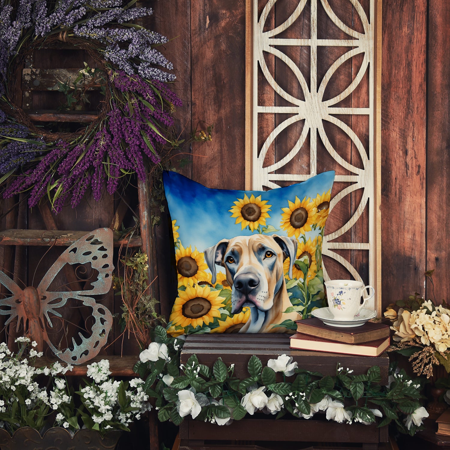 Great Dane in Sunflowers Throw Pillow