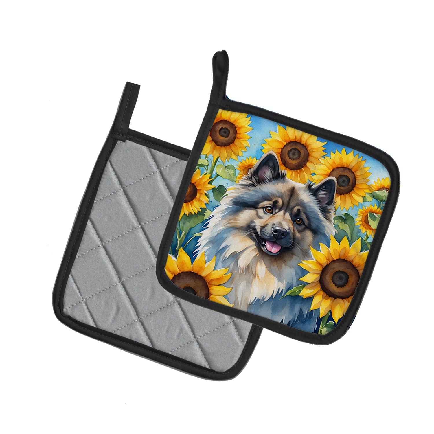 Keeshond in Sunflowers Pair of Pot Holders
