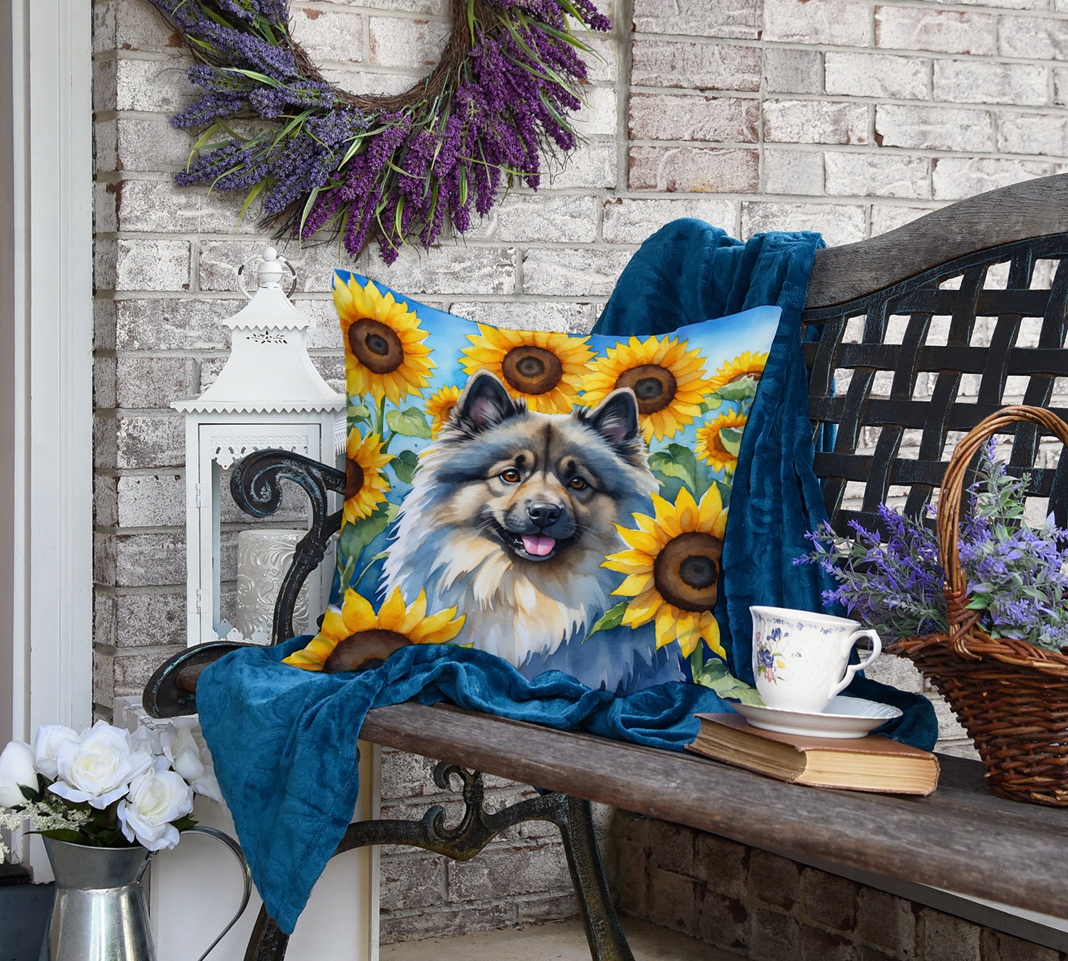 Keeshond in Sunflowers Throw Pillow