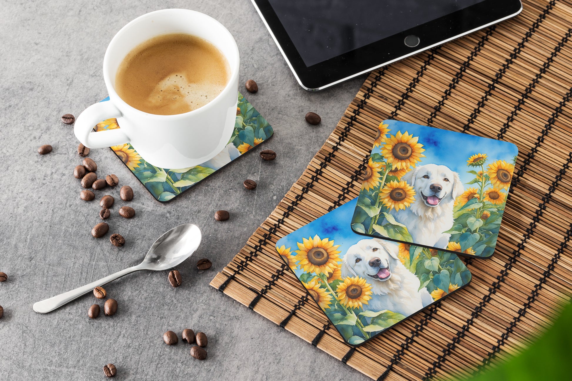 Foam Coasters featuring breed specific Kuvasz artwork. Presenting our Set of 4 Foam Coasters, a stylish and practical addition to your table setting. Each square coaster, measuring 3 1/2 inches by 3 1/2 inches, is perfectly sized to accommodate various drinkware, from coffee mugs to tumblers. These coasters stand out with their full-color artwork, permanently dyed onto the material for a vibrant and fade-resistant finish. They're not just functional, they're a fashionable statement, adding a touch of flair to any gathering or event. Our foam coasters serve a dual purpose - they protect your table from water stains and are perfect for both hot and cold drinks. The material used is similar to that of our high-quality mouse pads, ensuring durability and heat resistance. These coasters are easy to maintain - simply wash them in the top of your dishwasher and lay flat to dry. The design won't come off, ensuring they retain their vivid colors for years. Pair them with one of our insulated coolers or huggers for a cohesive, thoughtful gift set. Enhance your beverage experience with our Set of 4 Foam Coasters.