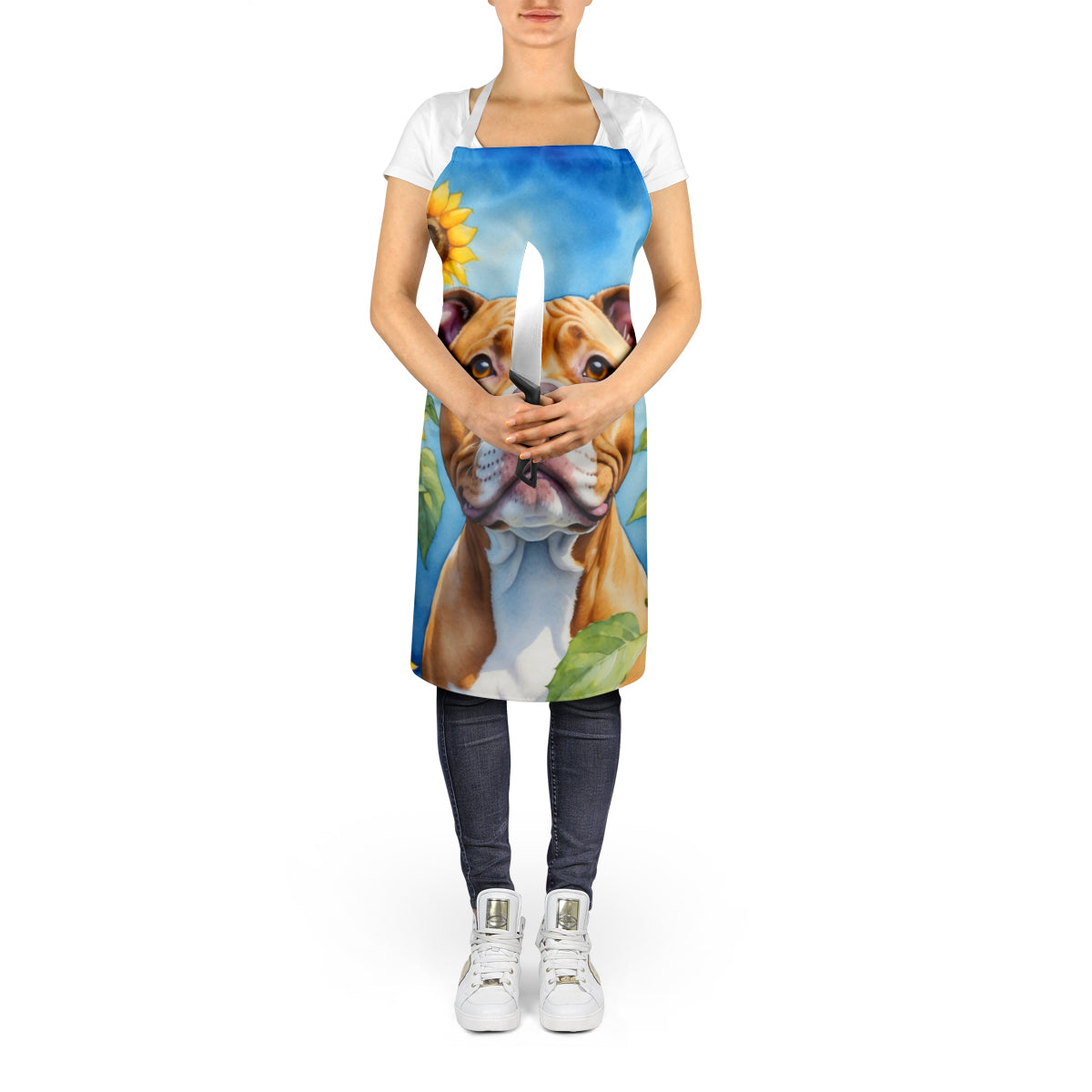 Apron featuring breed specific Pit Bull Terrier artwork. Elevate your cooking, baking, and grilling experiences with our versatile Kitchen or BBQ Apron. This Bib Style apron isn't just limited to culinary activities - it also serves as an excellent baking apron, artist apron, server apron, gardening apron, or even a dog grooming apron. The apron showcases vibrant full-color artwork contributed by one of our talented artists, bringing a dash of style to your daily tasks. With dimensions of approximately 27"W x 30"H, it provides ample coverage to protect your clothing from spills and splashes. Our apron is meticulously crafted from 100% Ultra Spun Polyester, known for its durability and lightweight nature. The apron comes with white tie straps, ensuring a comfortable and adjustable fit for all. It's a perfect choice for kitchen apron enthusiasts, whether you are a woman or a man. Designed for easy maintenance, this apron is fully machine washable. The quick-drying polyester material actively reduces staining, keeping your apron looking fresh and new for longer. Our beautifully designed apron isn't just a functional kitchen accessory - it's a fashion statement in the culinary world!