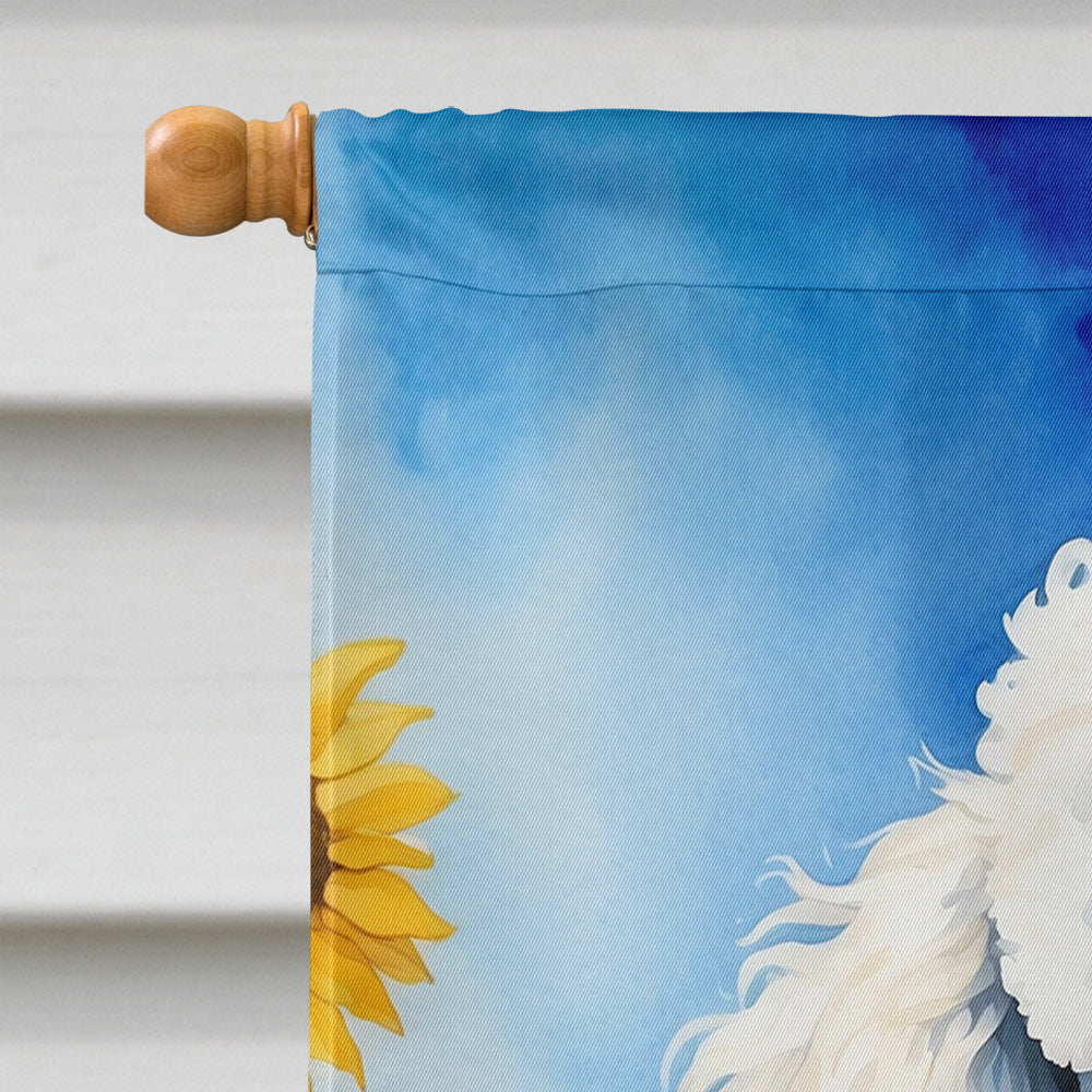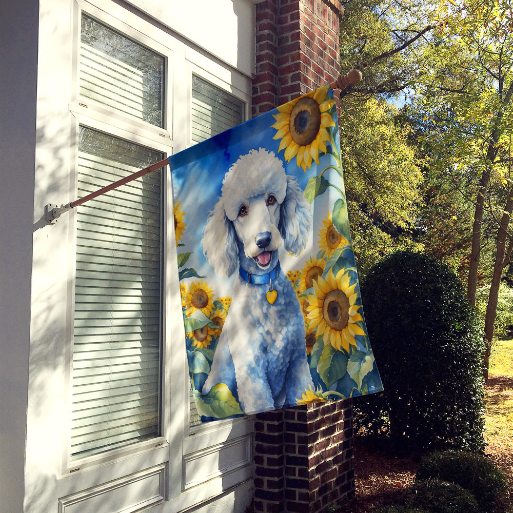 White Poodle in Sunflowers House Flag