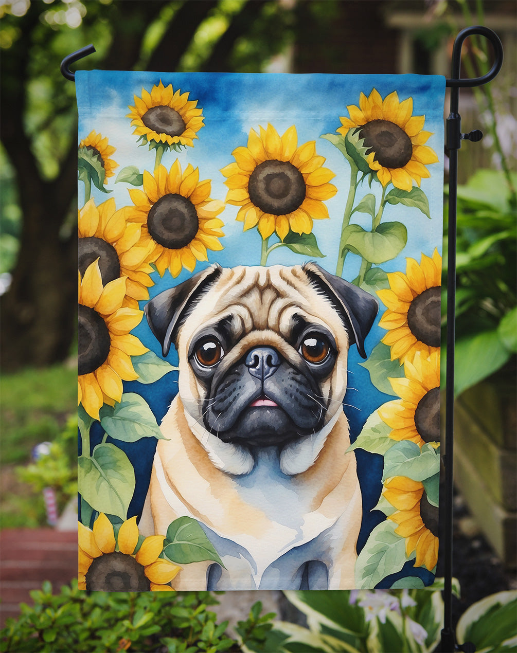 Garden Flag featuring breed specific Pug artwork. Enhance the beauty of your garden, patio, or yard with Caroline's Treasures Decorative Garden Flag, proudly made in the USA. Crafted from two pieces of thick, double-sided polyester fabric, this 2-ply garden flag is designed to withstand various weather conditions, making it water-resistant and weatherproof. Featuring correctly readable words on both sides, this garden flag offers a delightful visual experience from any angle. With its heavier weight, it stands out among other garden flags, ensuring stability and durability even in wind, rain, and snow. Measuring approximately 11 1/4 inches by 15 1/2 inches, this flag allows you to personalize your outdoor decor. It comes with a 1 1/2-inch sleeve sewn in, allowing easy attachment to any standard garden flag stand or garden size porch hanger (sold separately). Make a statement in your outdoor space with Caroline's Treasures Decorative Garden Flag, a vibrant and high-quality flag that adds color and personality to your surroundings. Proudly made in the USA, it's a symbol of quality craftsmanship and attention to detail.